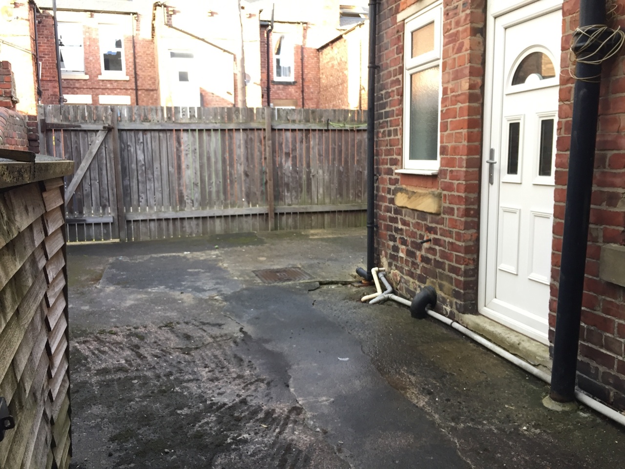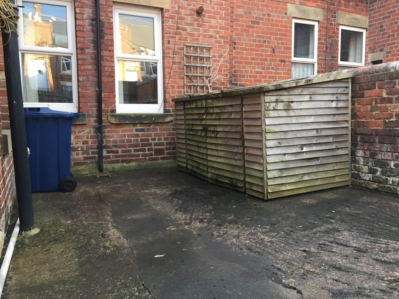 - Back yard with outdoor storage space