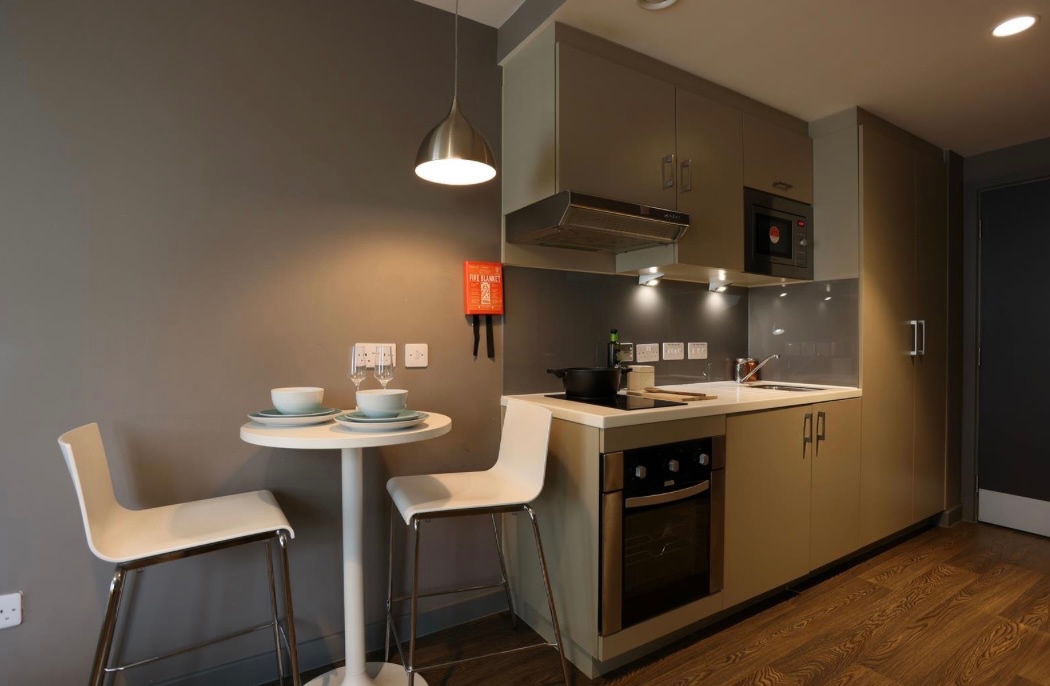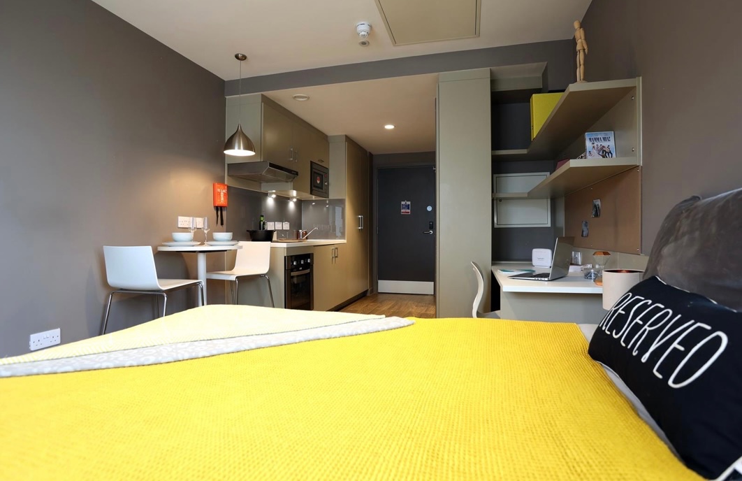 Modern and contemporary standard studio at Urban Study Melbourne ALL BILLS INCLUSIVE (ex. Council Tax, Band A) in Newcastle City Centre. Perfect for working professionals and students this studio apartment in this super-popular development has a galley kitchen (oven, electric hob, extractor fan, microwave and fridge/freezer), en suite shower room, desk space – perfect for working from home or studying and great storage solutions for studio living.