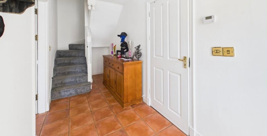 Hallway – Front door opening into a welcoming hall with stairs to the first floor, radiator, and access to the garage. Doors lead to the kitchen diner and cloakroom.