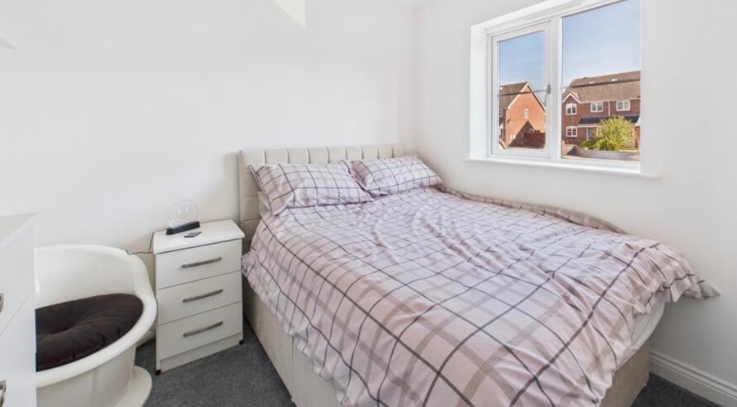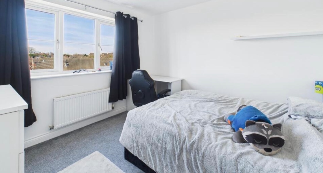 Bedroom – UPVC window, radiator, and built-in storage cupboard.
