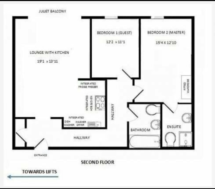 The property comprises of 2 Double Bedrooms one with fitted Wardrobe, 2 White Tiled bathrooms (one En-Suite) with glass shower screen/enclosed bath, and mixer taps. The reception area comprises of a large Open Plan Lounge and a modern fully fitted Kitchen with integrated Bosch Dishwasher, Fridge Freezer, Washer Dryer, Oven, Hob, Chimney Hood and fitted cabinets. Additional benefits include laminated wood flooring, double glazing, gas central heating, and a Juliet balcony.