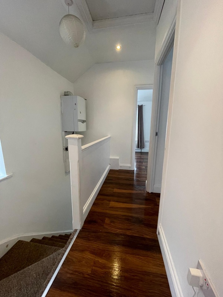 Downstairs has two receptions rooms and a fitted kitchen. Upstairs has three bedrooms (two doubles and one single) and a family bathroom. Unfurnished.