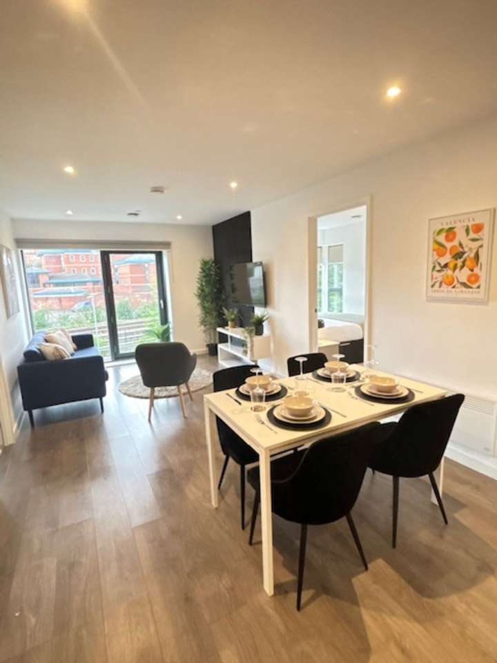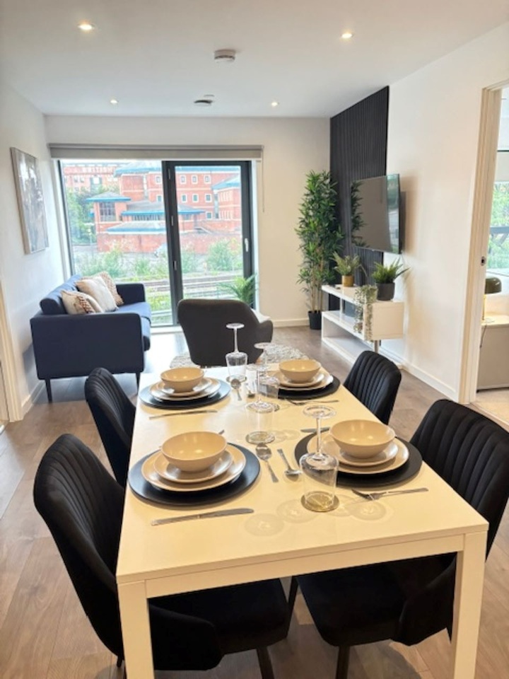 Located just minutes way from Nottingham train station in the heart of the city centre, the apartment is conveniently located with many restaurants, cafes, and shops right by your doorstep and only a short walk away to Nottingham castle and Victoria shopping centre.