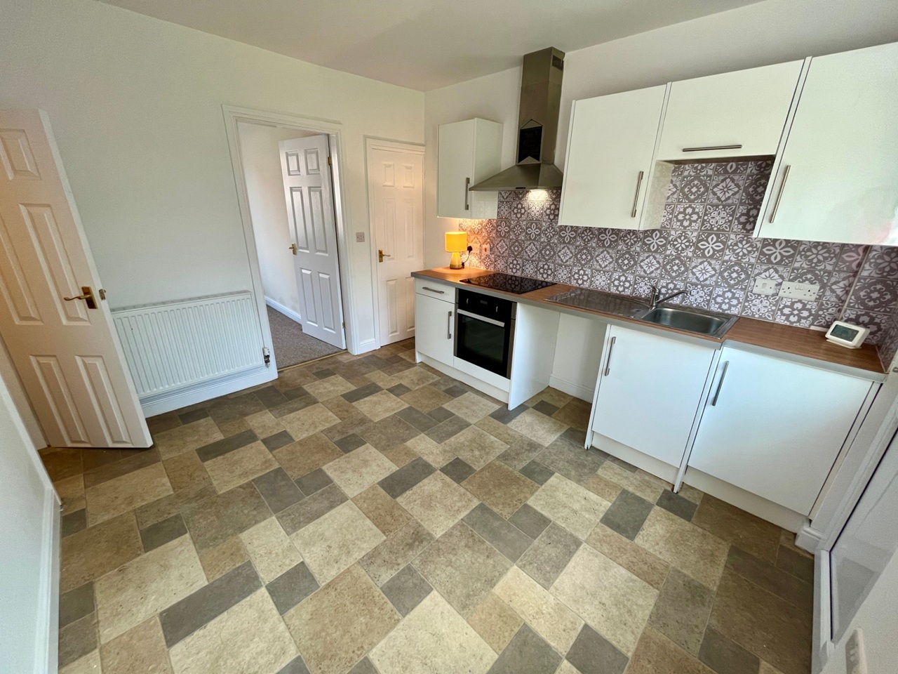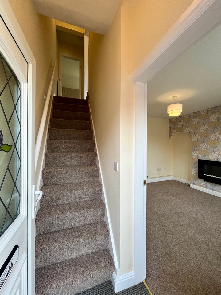 The accommodation comprises of a cosy lounge with modern, wall-mounted electric fire, a kitchen with two pantries and with modern white gloss fitted kitchen cupboards, built-in oven, electric ceramic hob, extractor and space for washing machine. To the first floor, there are two double bedrooms with additional storage to the large master bedroom. Good size bathroom with electric shower over the bath and built in storage cupboard. The property is set back from the road with a low maintenance gravelled front garden and a shared side passageway leading to an enclosed, good sized rear garden with fabulous views of the fields directly behind.