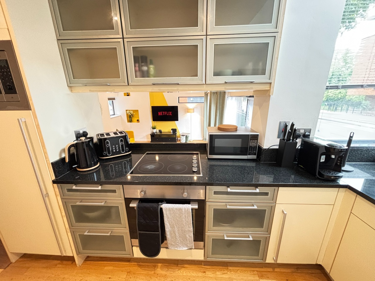 Located just minutes way from Nottingham Castle in the heart of the city centre, the apartment is conveniently located with many restaurants, cafes, and shops right by your doorstep and only a short walk away.