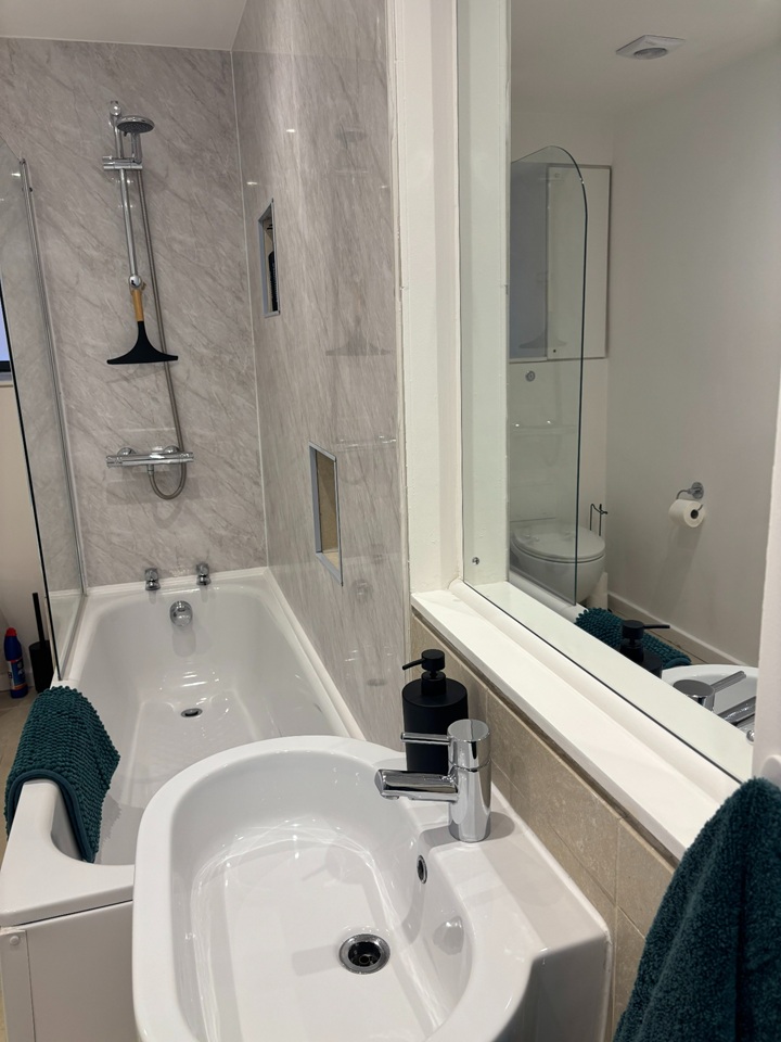 🛀 There is one large bathroom accessible through bedroom 1 or 2, and a seperatre toilet located on the ground floor.