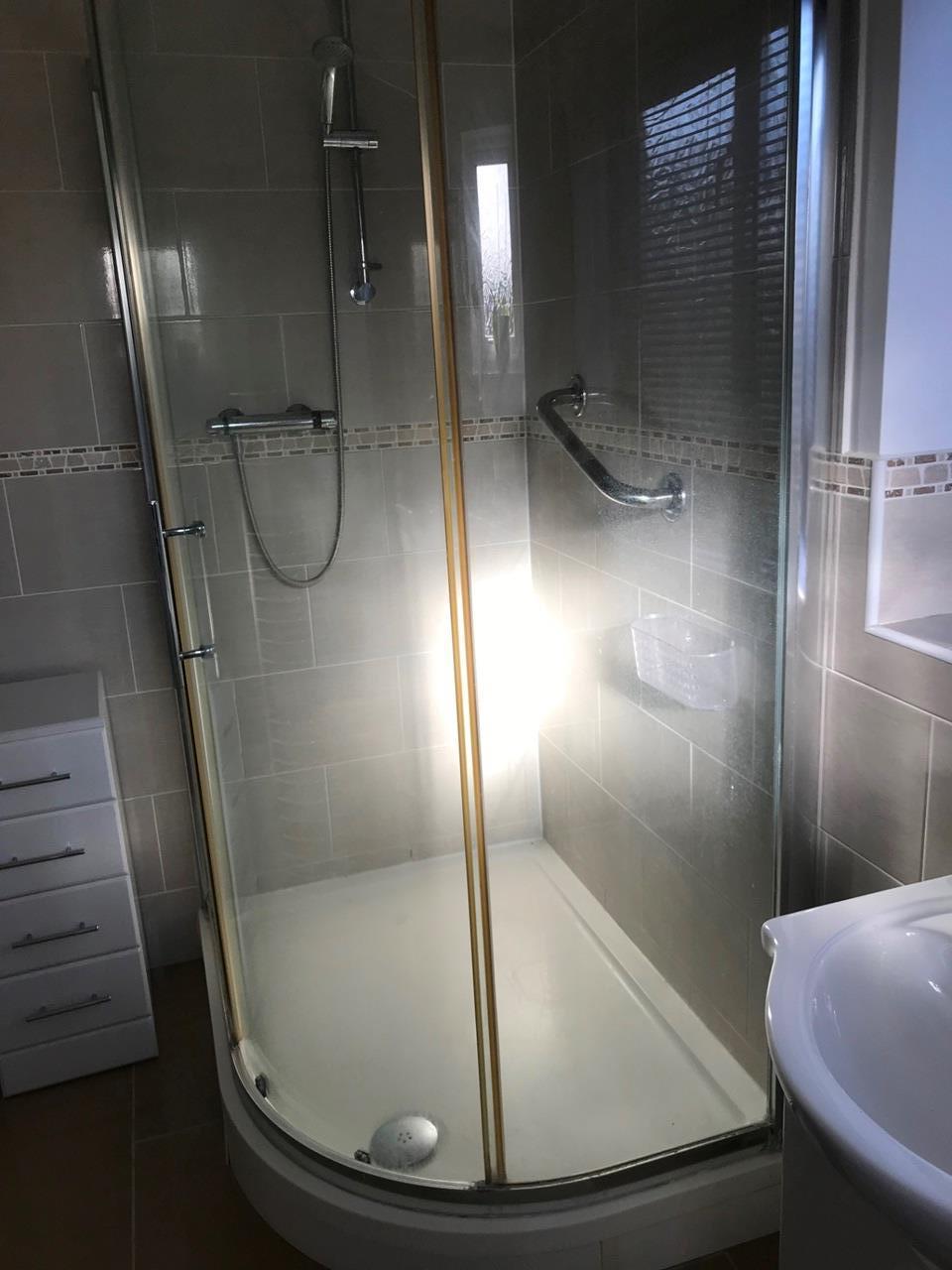 The bathroom is downstairs and comprises of quadrant shower cubicle, inset wash hand basin, toilet, heated towel rail. Tiled to the floor and part tiled to height.