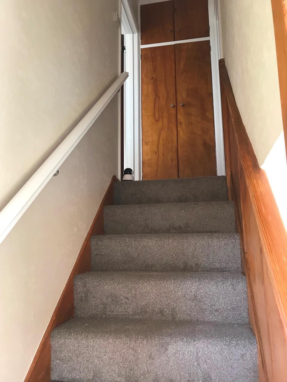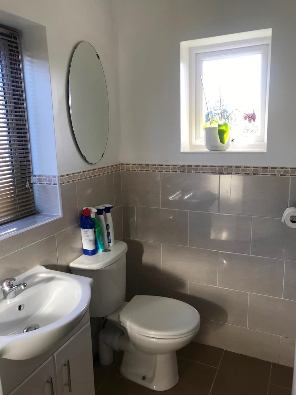 There is a stairway to the first floor with a small landing which offers a large storage cupboard, then two double bedrooms, the large one offering front and rear aspects. There are two built in cupboards, currently two large wardrobes in bedroom 1 and one large unit in Bedroom 2. This can remain if a prospective tenant wishes.