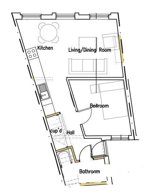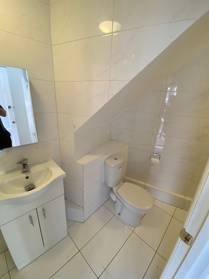 - The flat is accessed from the rear of the shops and up external stairs and walkways.