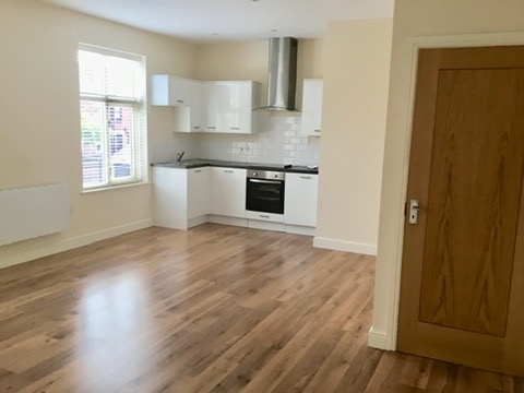 The heart of the home is a stylish open-plan kitchen, dining, and living area. The kitchen is equipped with an electric oven and hob, as well as integrated fridge and freezer units. Throughout the property, quality wooden flooring enhances the modern aesthetic, while efficient electric panel heaters provide economical warmth.
