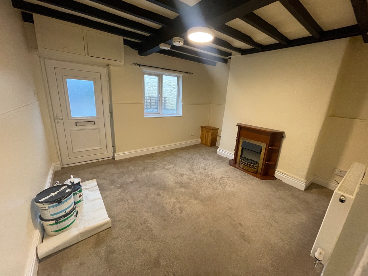 Lounge included flame effect electric fire.