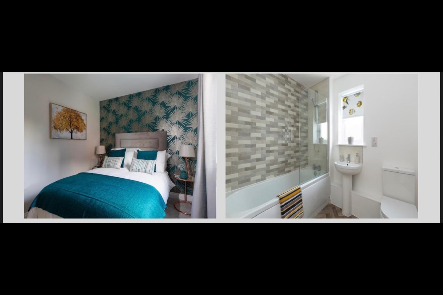 With a bathroom suite comprising a paneled bath with electric shower over, shower screen and tiled walls, pedestal wash hand basin, low level flush W.C. and heated towel rail.