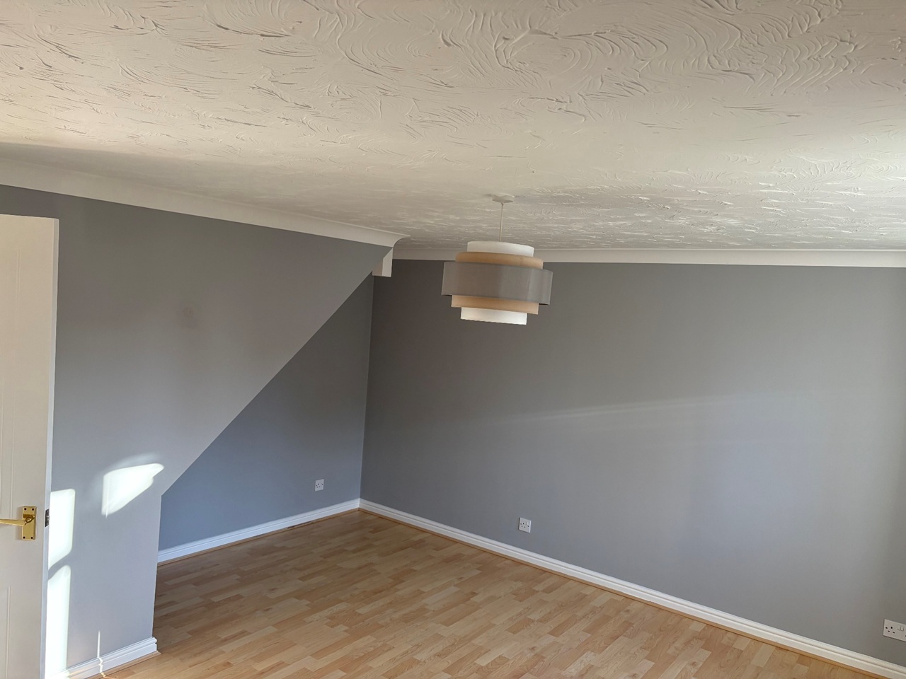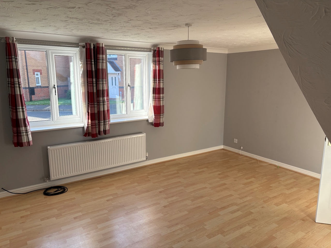 To the front of the property good sized bright, spacious lounge. Two windows, radiator. TV aerial point. Laminate flooring. Décor grey and white