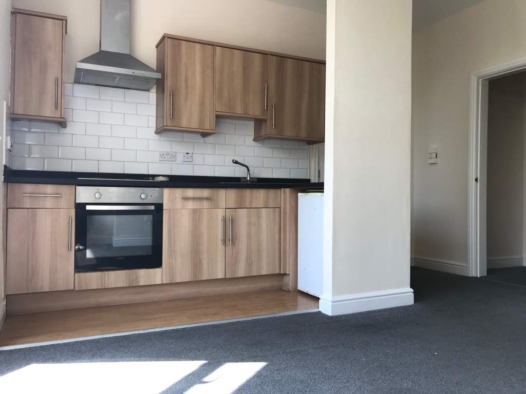 Kitchen/Lounge - Fully fitted L shaped kitchen with modern units and worktops with integrated oven and hob- Washer/dryer and fridge made available.