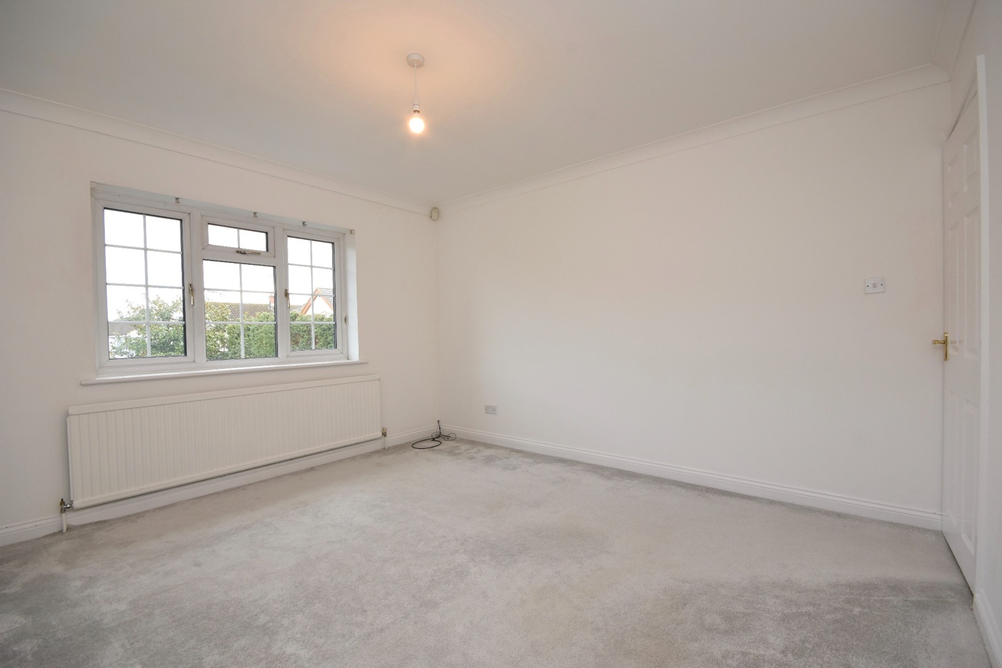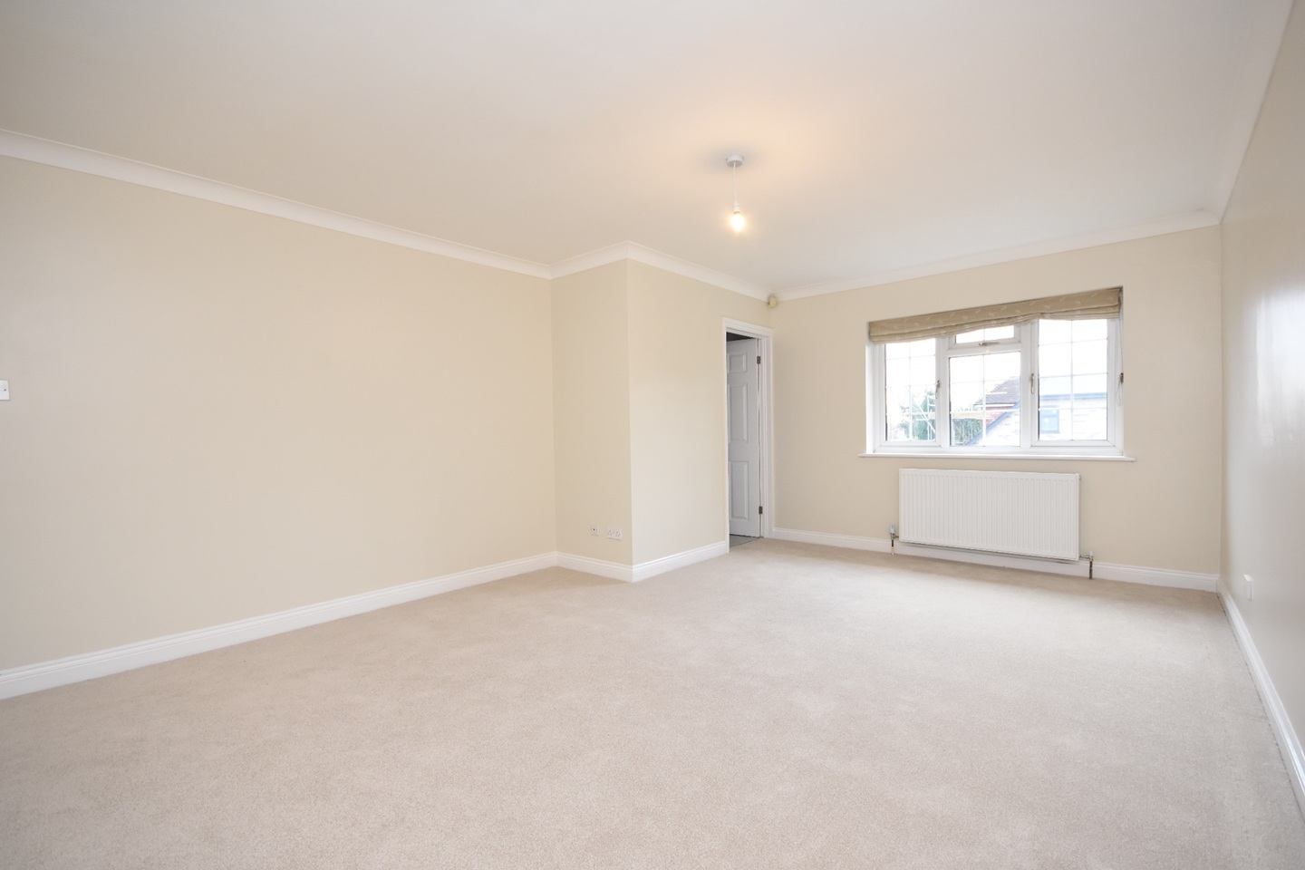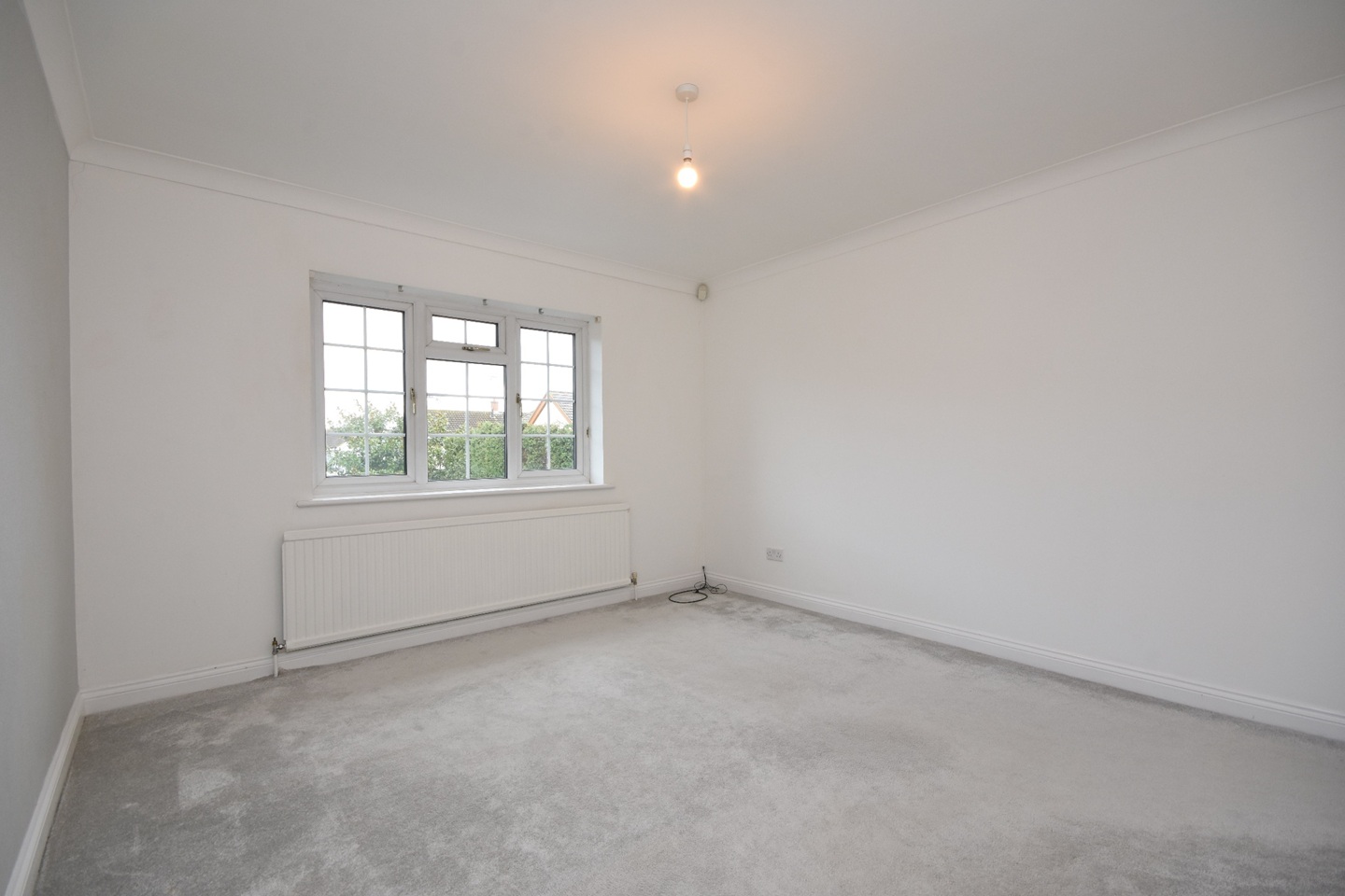 Double glazed window looking out to the front of the property, carpet flooring, various mains power points, radiator heating.