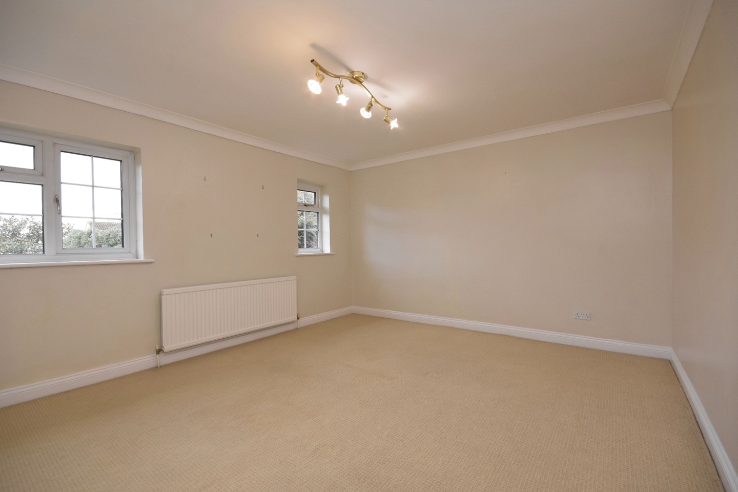 Double glazed window looking out to the front of the property, quality carpet flooring, smooth walls and ceiling, various mains power points, radiator heating.