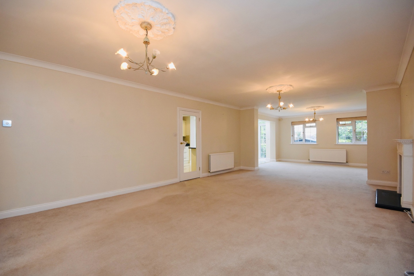 Double glazed windows looking out to the side and rear of the property, access to main kitchen and separate access to formal dinning area, ample adjustable lighting, short twist wool carpet, various power points, radiator heating, feature ornate fireplace.