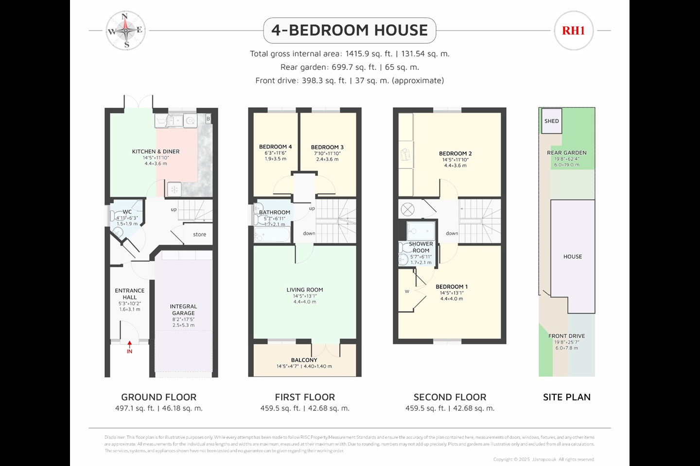 There is a large kitchen dinning space with doors onto a pleasant garden. The living room is located on the first floor and has the added bonus of a balcony. The master bedroom has an ensuite and plenty of wardrobe space, there is a second big double room and two smaller bedrooms. There is a good size family bathroom, as well as a separate downstairs W.C. Another bonus is the allocated parking space and a garage for that all important extra storage or a gym space.