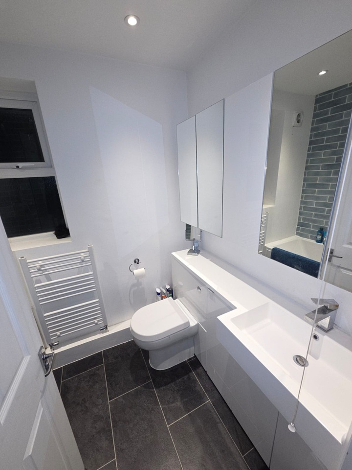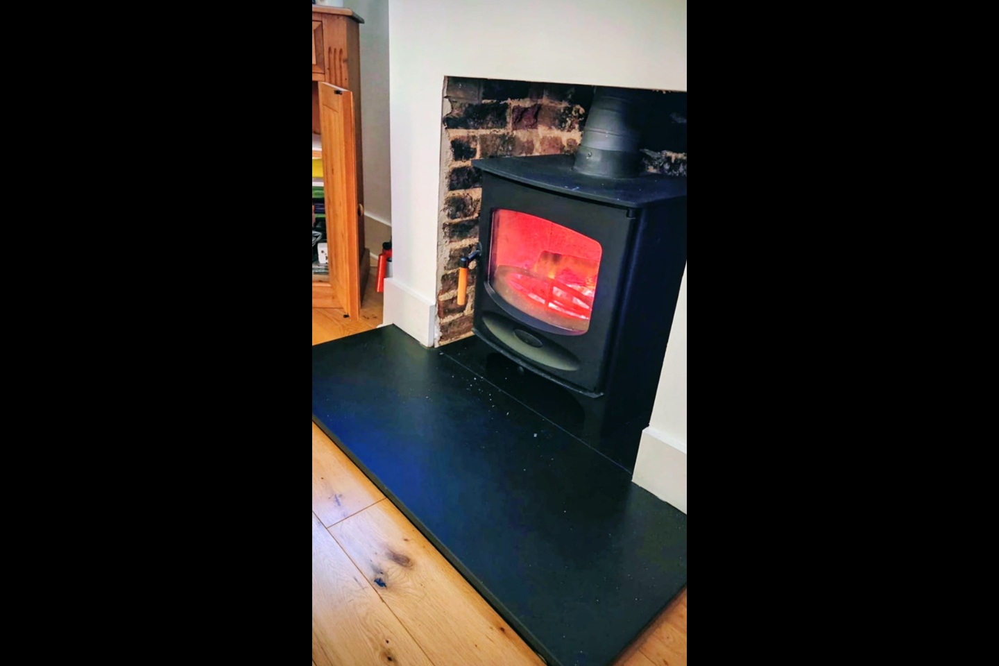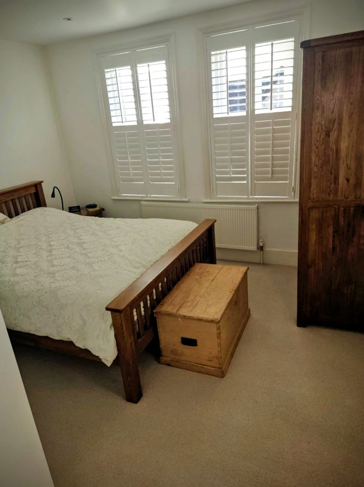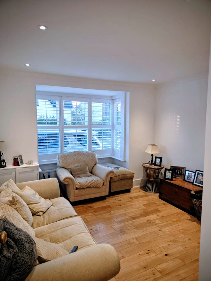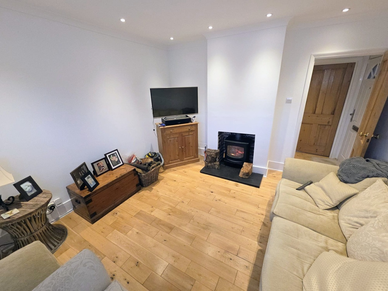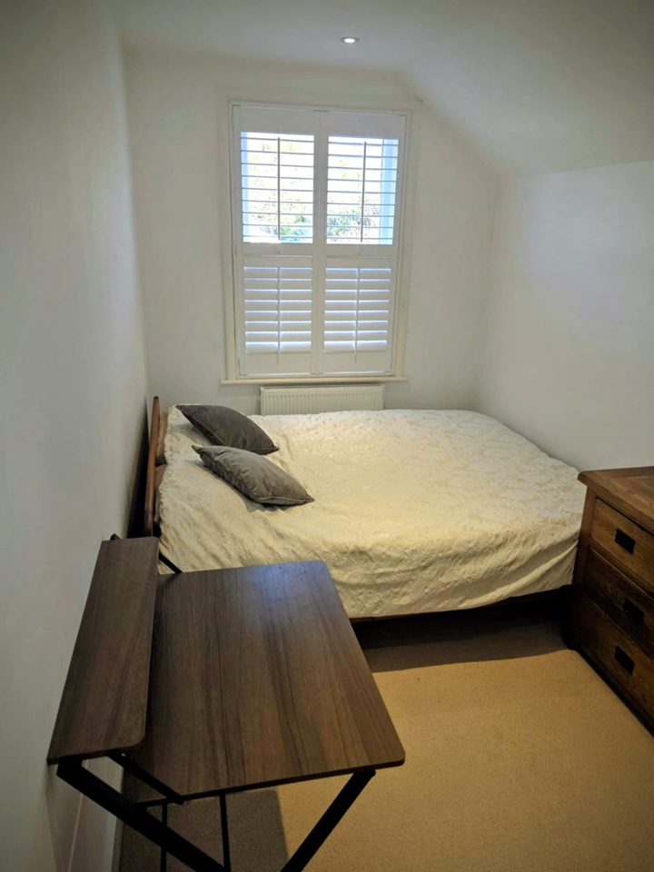 Shared lounge with fireplace, kitchen, dining room, bathroom, front drive and garden.