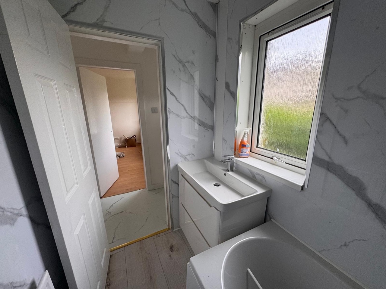 This one bedroom flat has recently been refurbished and consists of one double bedroom, bathroom, sitting room and kitchen. Access to rear garden from the kitchen.
