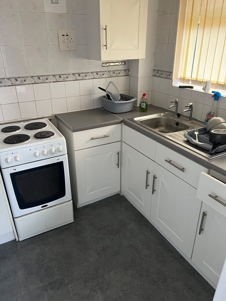 Unfurnished furnished. Kitchen equipped with Electric oven, , and white cabinets. Tenant will pay all related conventional bills, council tax, electric and water bills .