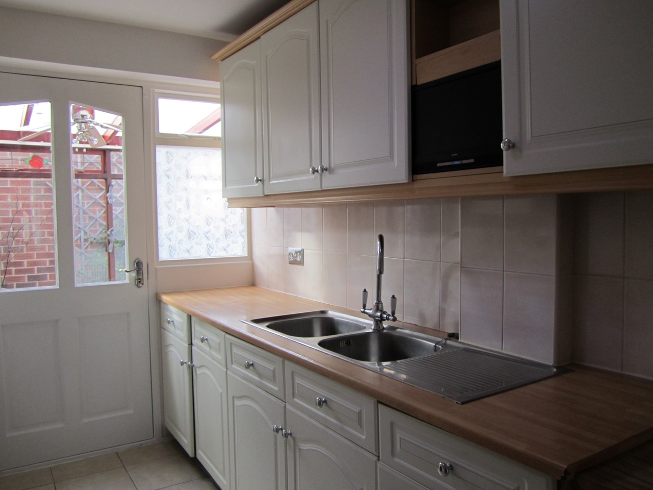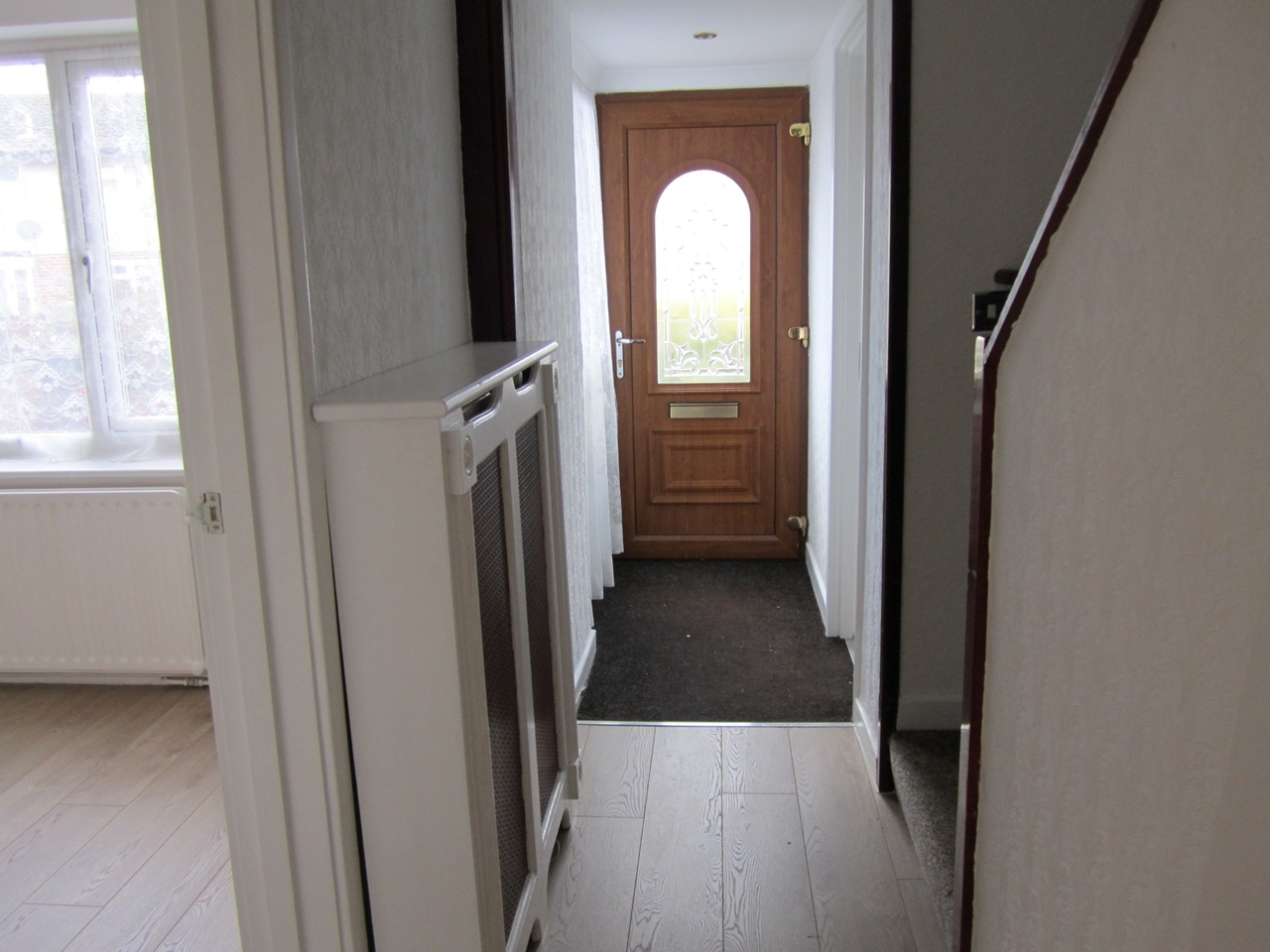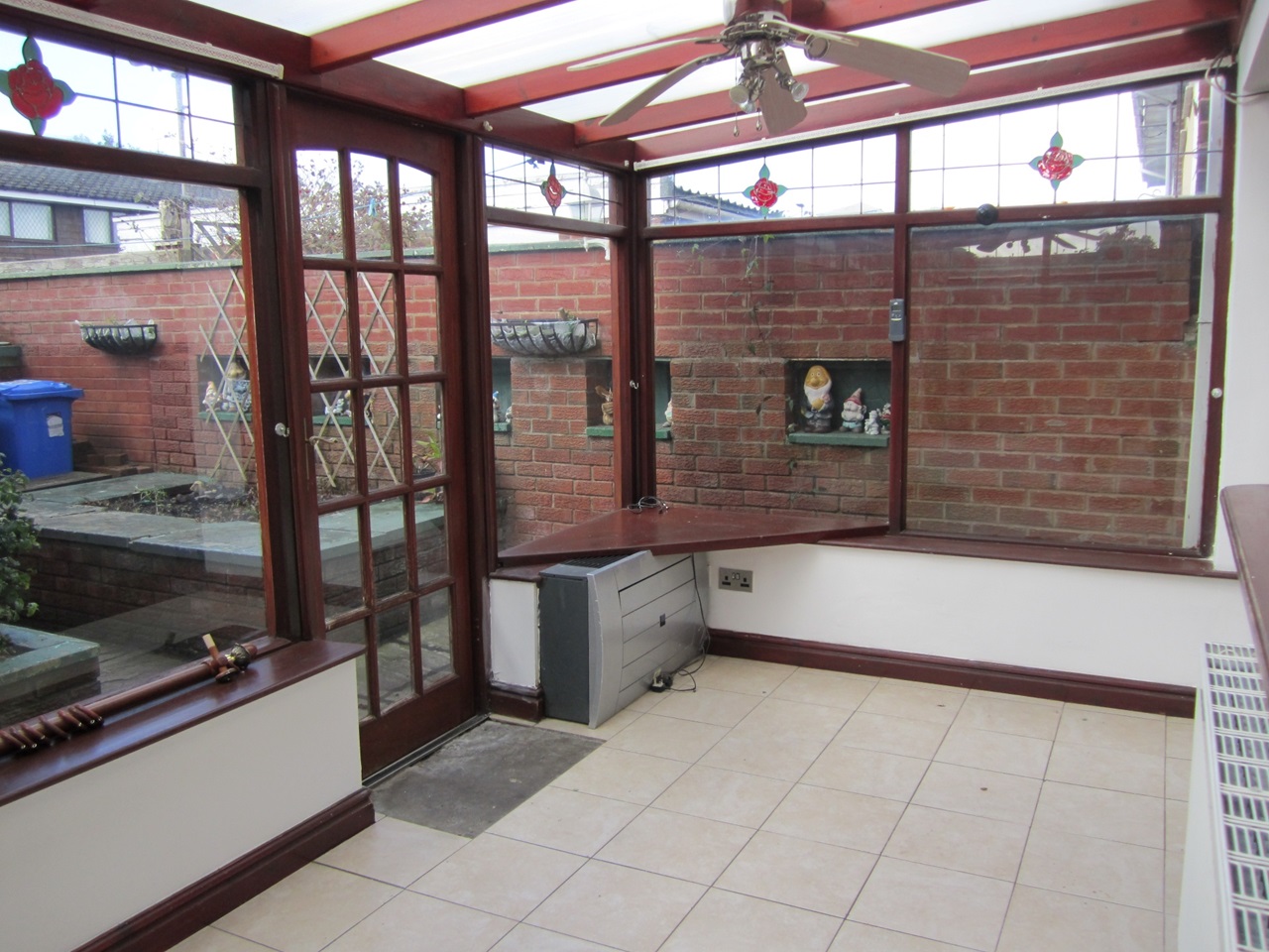 From the hallway leading to front room, then separated lounge, kitchen, downstairs toilet, storage cupboard, big conservetry in the back yard. Upstairs with two big double bed rooms and one single bed room, big modern bathroom. Separated garage in the back yard.
