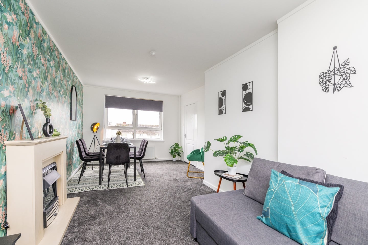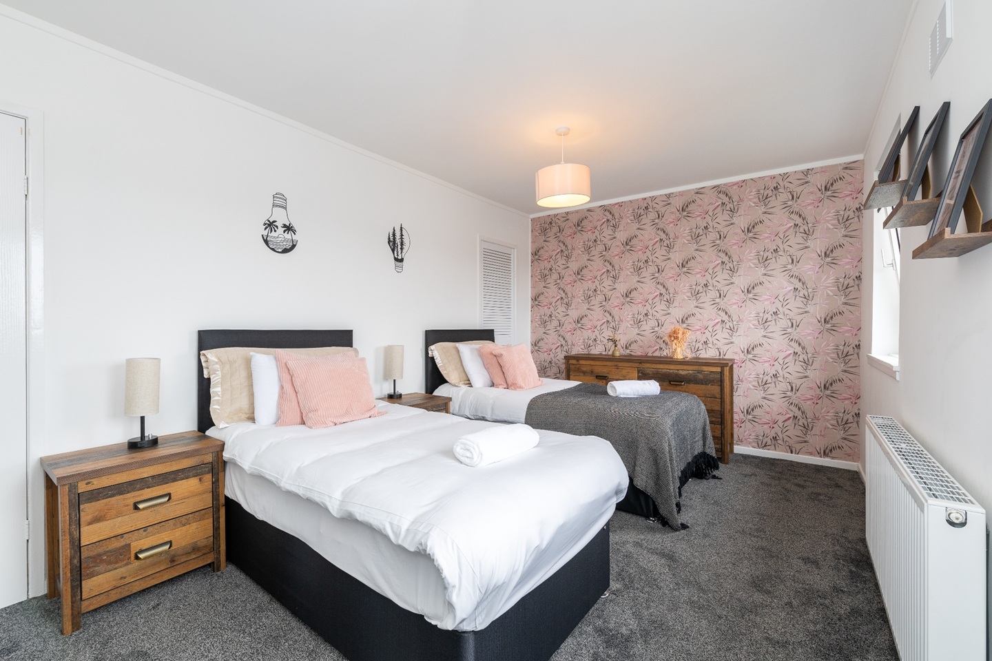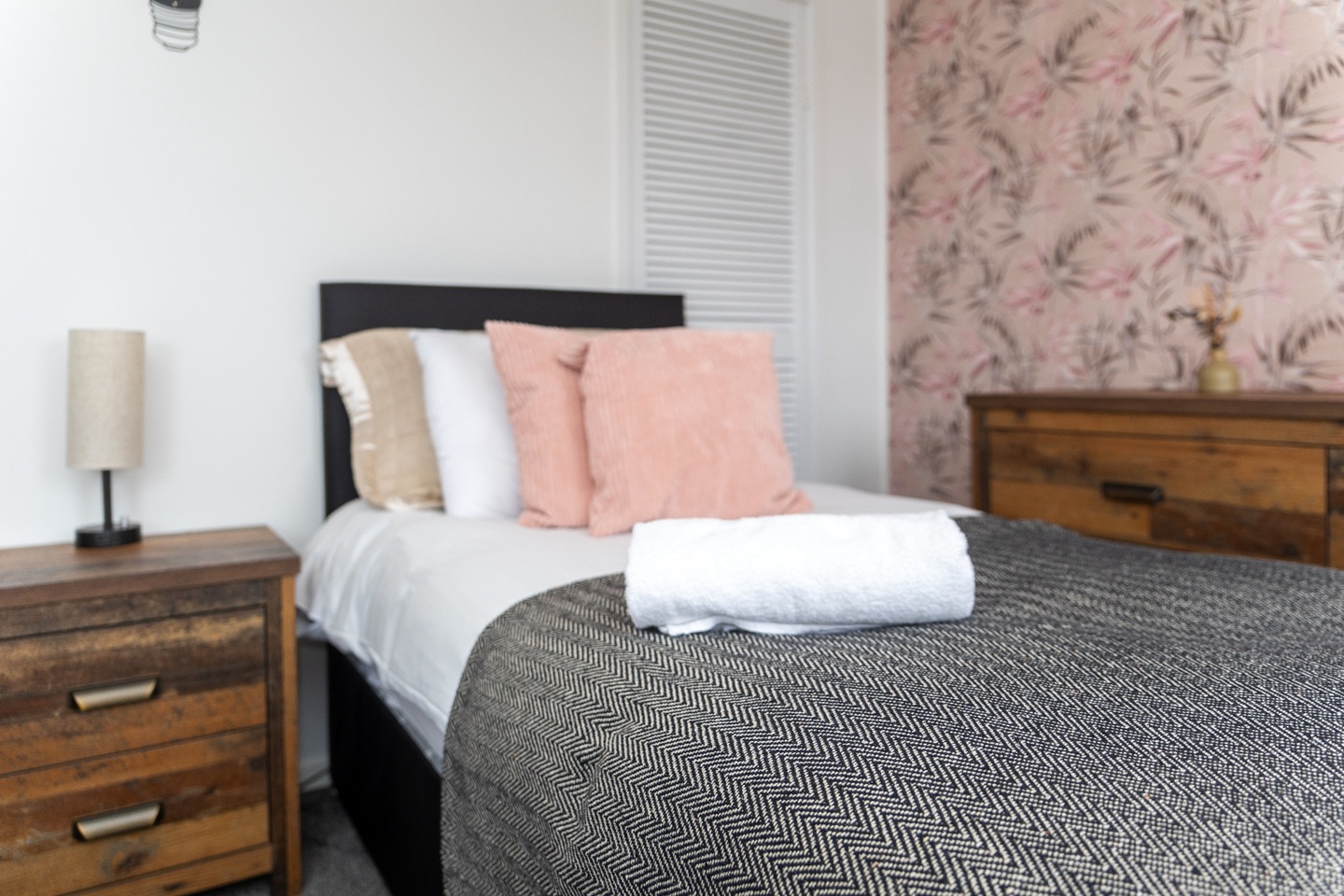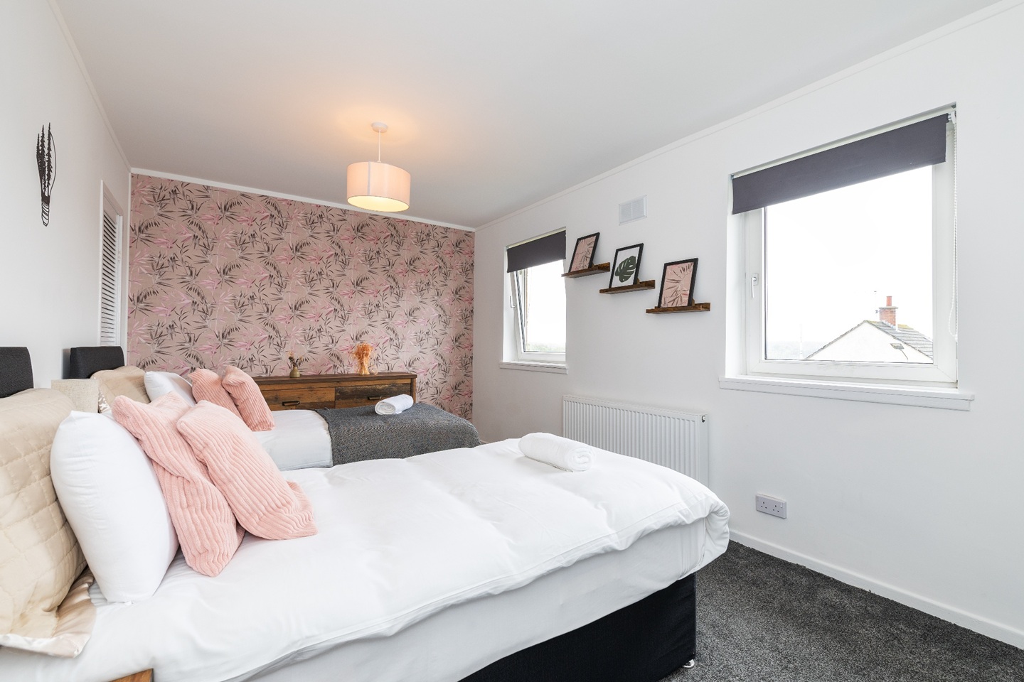 Beautiful and modern 2 bedroom house located in Coatbridge with free on street parking. Two spacious bedrooms offer zip link super king bed in 2 bedrooms and ideal for contractors and families with children. The Living room offers comfy sofa bed where extra 2 guests can sleep, smart TV with Netflix and dining table. Spacious kitchen offers fridge freezer, microwave, oven with hob and washing machine. Modern bathroom offers shower over bath and complimentary toiletries All the bed linen and towels are included as well. Selection of shops and restaurants are just short walk away. Glasgow City centre is located 15 miles away and Edinburgh is 38 miles away. Kirkwoos Train Station is less than 15 misnaway with direct trains to Glasgow and Edinburgh.away with direct trains to Glasgow and Edinburgh. Short Term Rental Only ( From 1 month upto 3 months available)