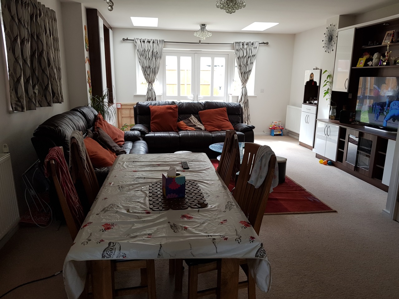 The kitchen leads onto a spacious extended 23’6” X 15’9” huge living/dining with inbuilt cupboards for Tv and storage area with an electricity meter/storage room and patio doors leading out to a spacious garden.