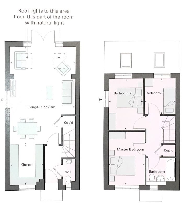 Onto the first floor is a double size 12’9” X 8’6” master bedroom, 12’1” X 8’0” the second bedroom with modern built-in wardrobes in both the bedrooms and an 8’2” X 7’2” third bedroom.