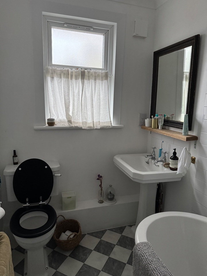 The flat benefits from a large bathroom with an additional separate toilet.