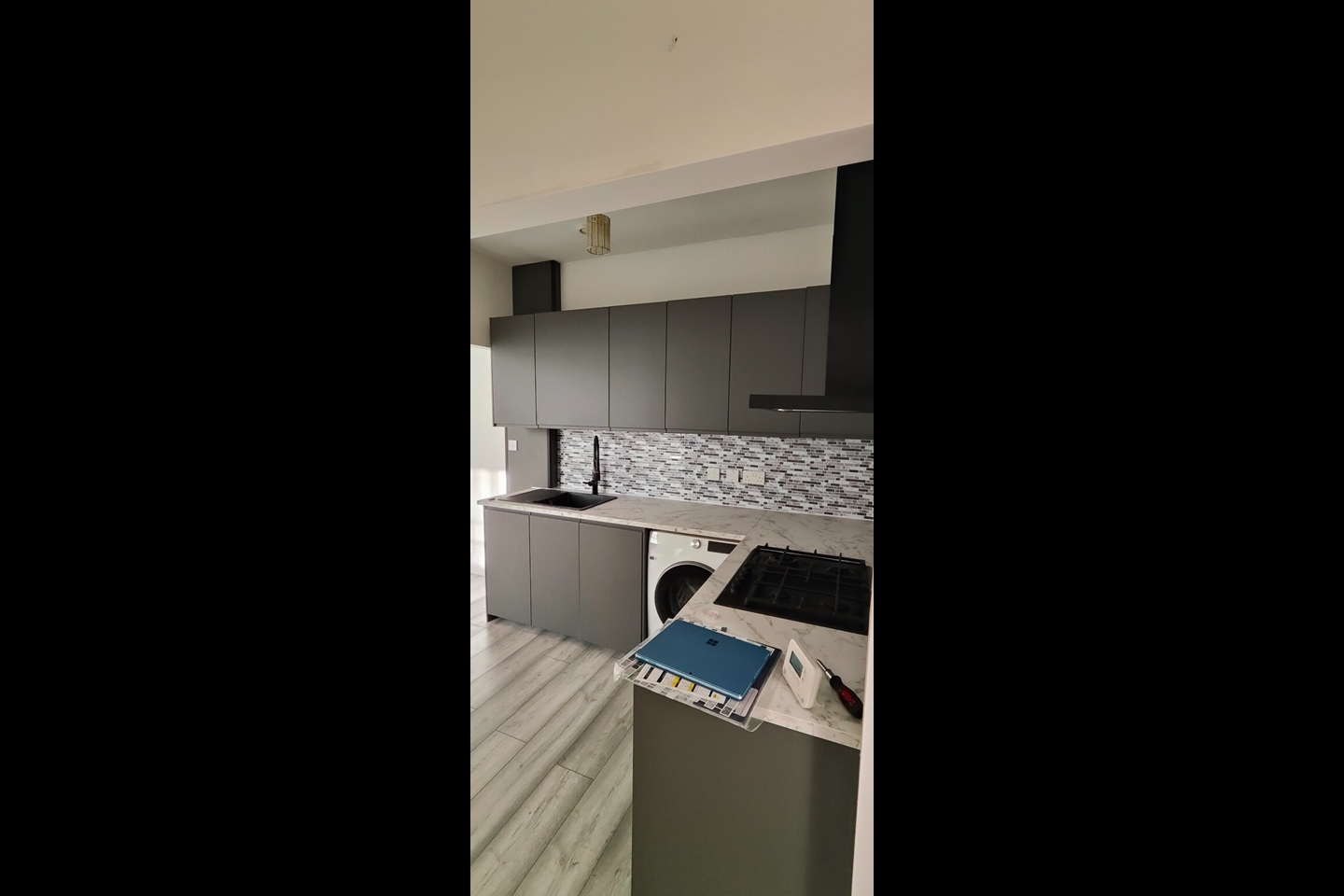 Photographs donot do adequate justice to the amount of space available (Total area is 77 sq mtrs) The living room with the open plan kitchen with high ceilings gives a huge entertaining space.