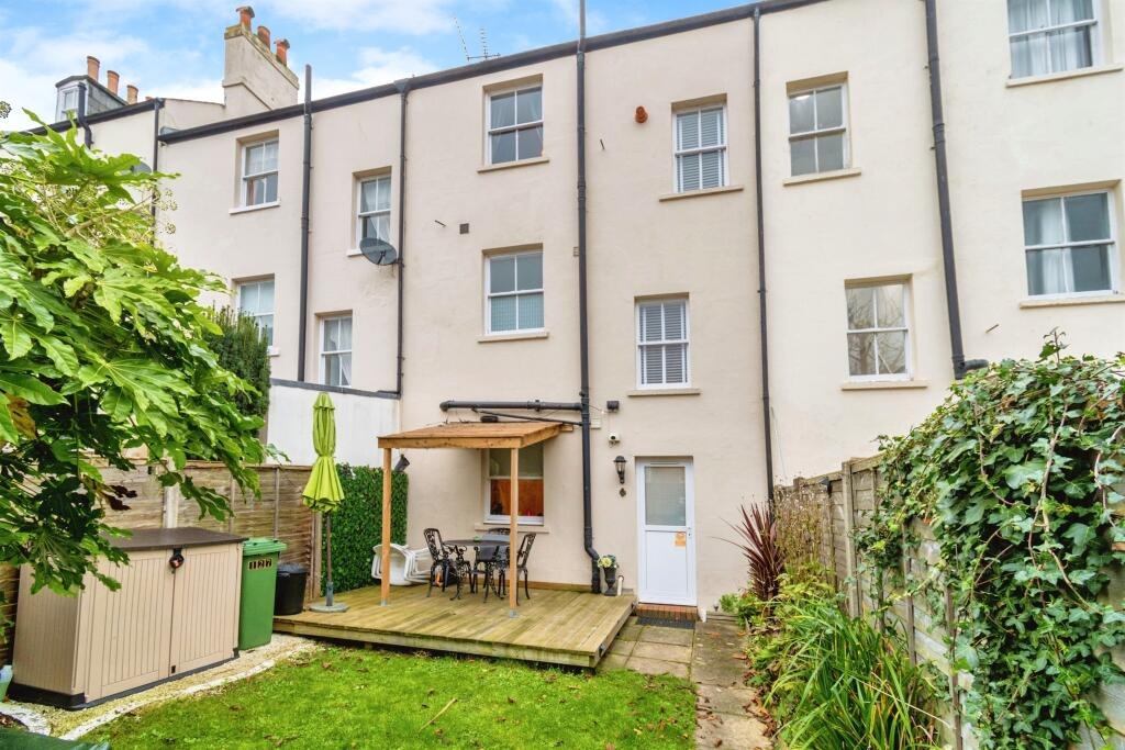 Private courtyard garden with decked area, brick-built BBQ, and secure allocated parking at the rear.