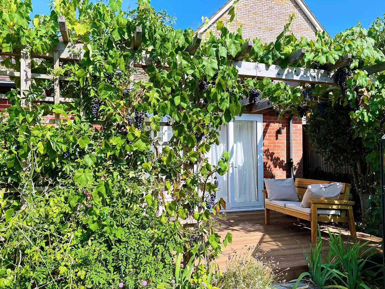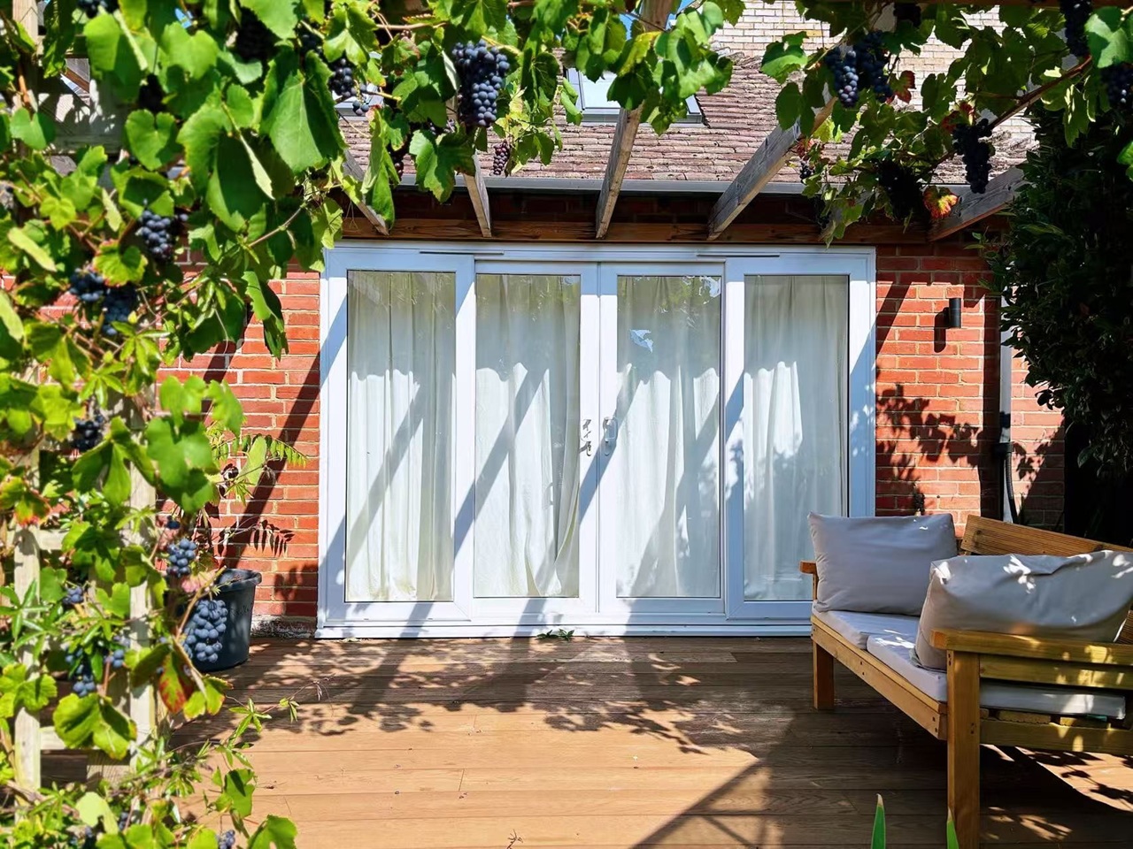 Large patio with garden view