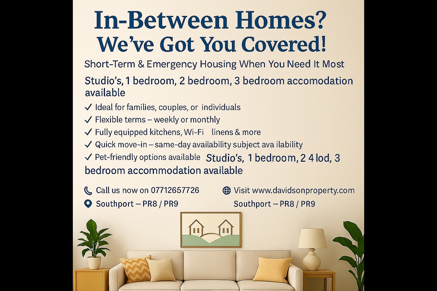 Welcome to Beach House tucked away in highly desirable quiet area. A leafy suburb near Birkdale village and Southport town center, we offer a selection of serviced apartment perfect for people, professionals or families looking for a short term let, feel free to call us to discuss your requirements whether it be in between house moves or a corporate let.