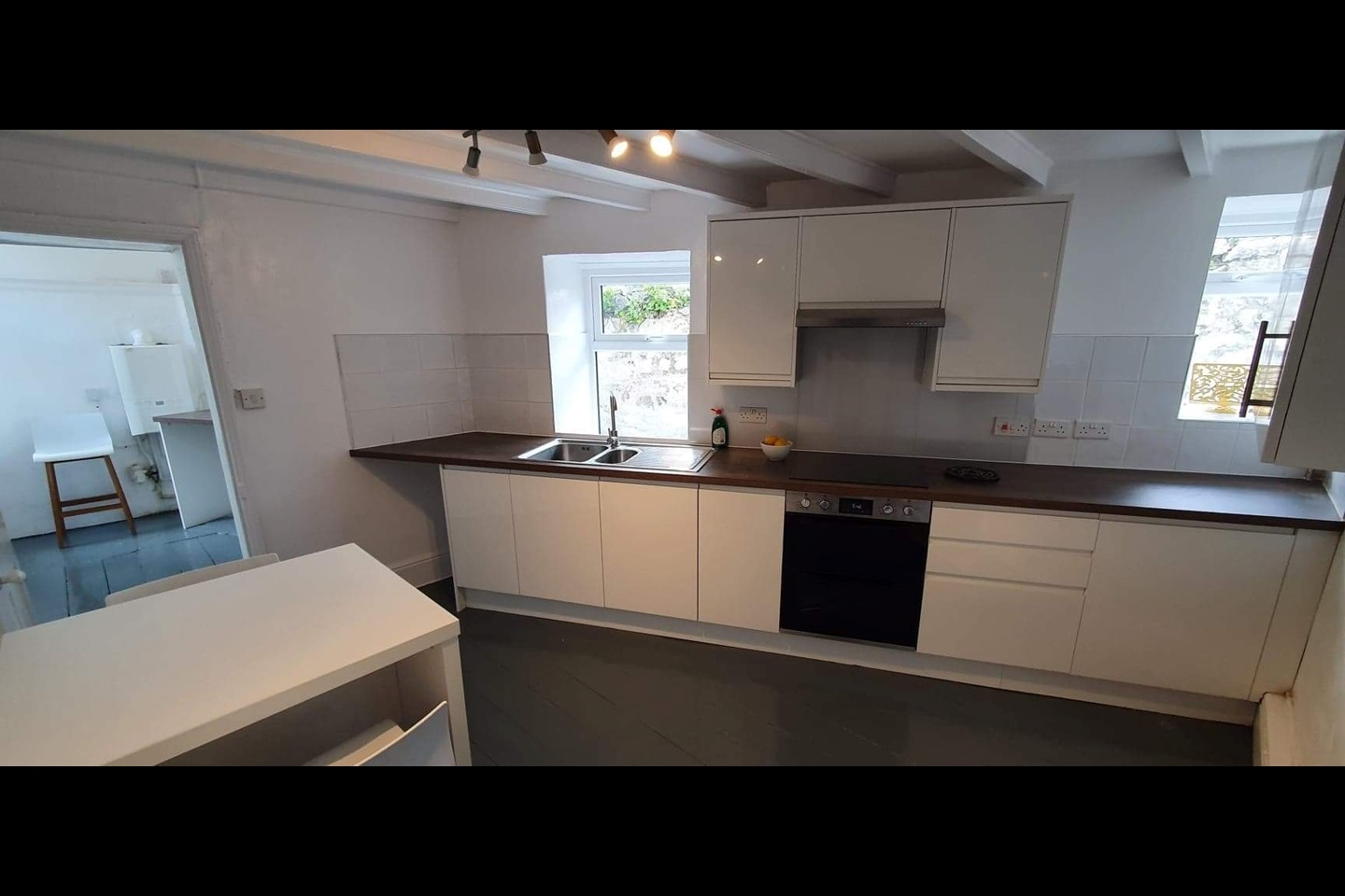 Large lounge through dining room with feature fireplace measuring 24ft x14 . There is a good sized kitchen with room for a dining table and additional extra utility room for fridge freezer and washing machine. There is a very useful sunny outside courtyard with lockable storage area. Parking for one car to the side of the property.