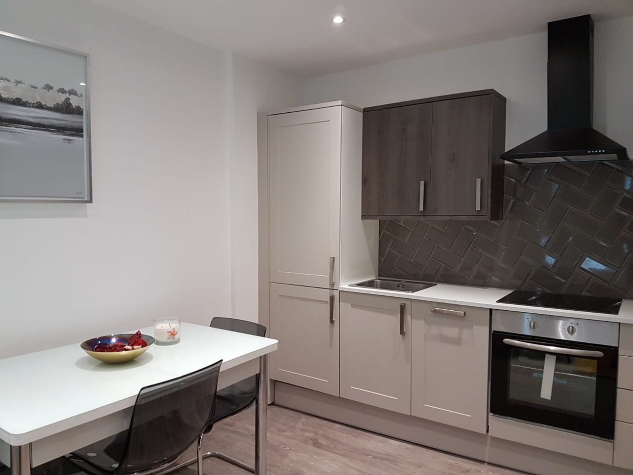 The property comprises upon entering, hallway, two double bedroom with en suite, modern bathroom and an open plan reception room with fully fitted kitchen.