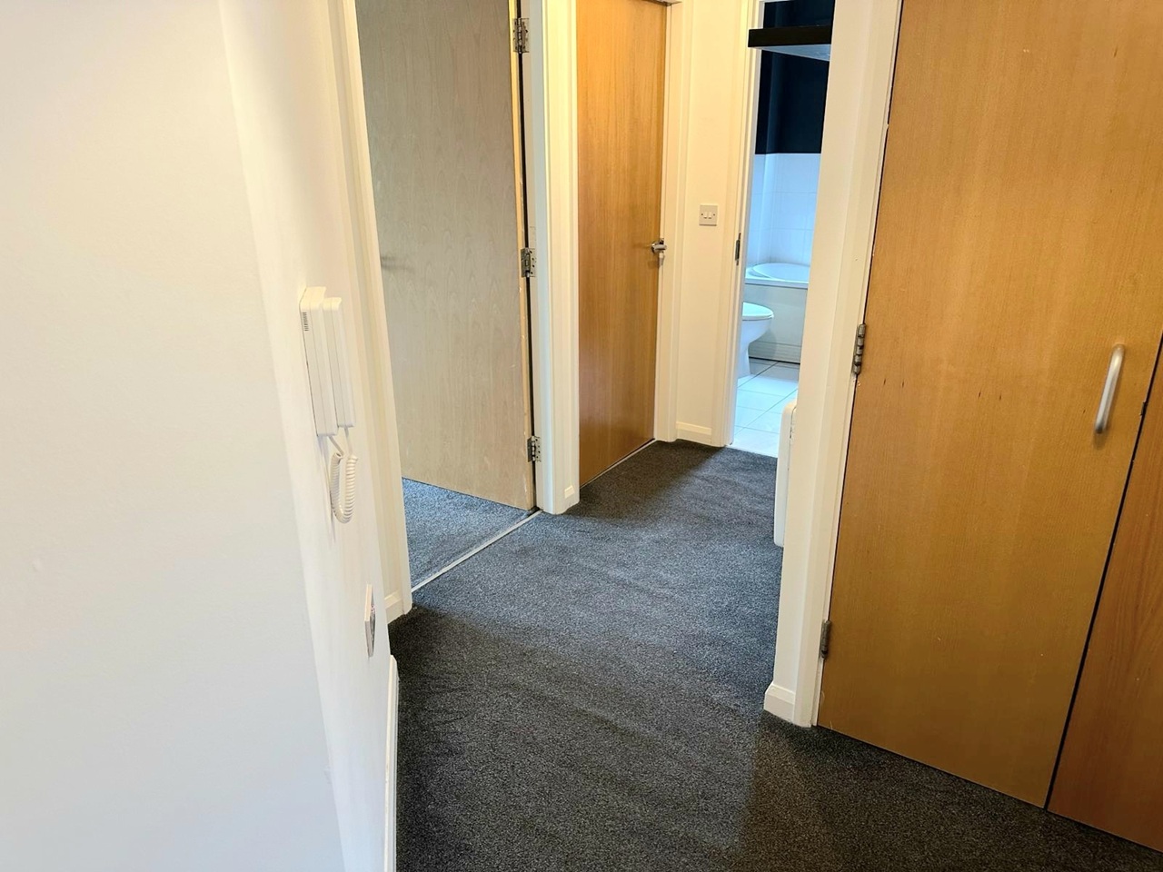 It features an entrance hallway, with utility cupboard featuring washer-dryer, and 2 double bedrooms, one featuring Juliet balcony and ensuite bathroom.