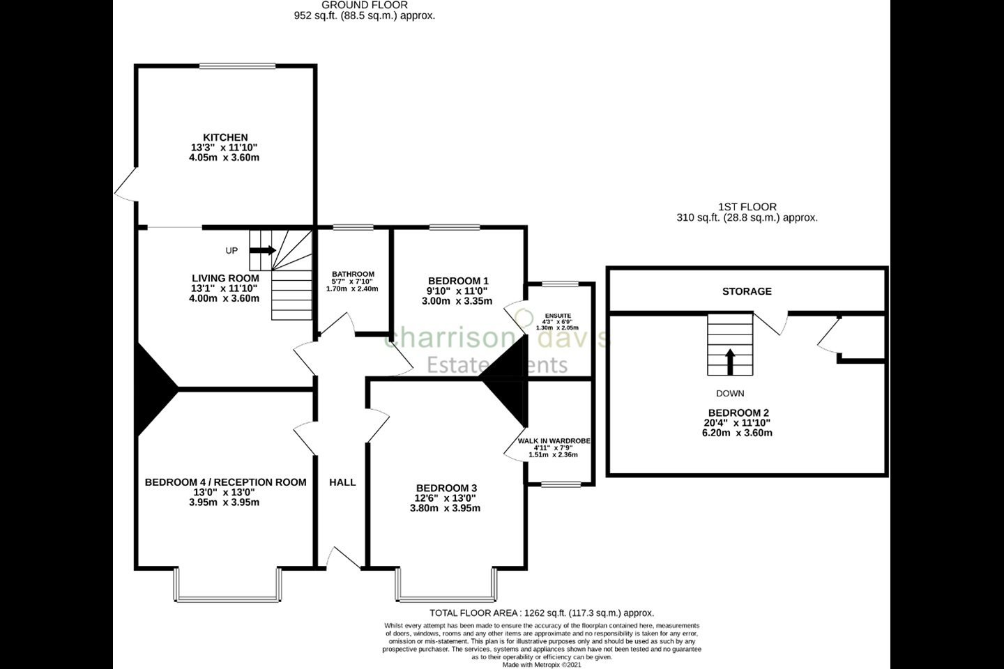 11' 9'' x 13' 3'' (3.6m x 4.05m)