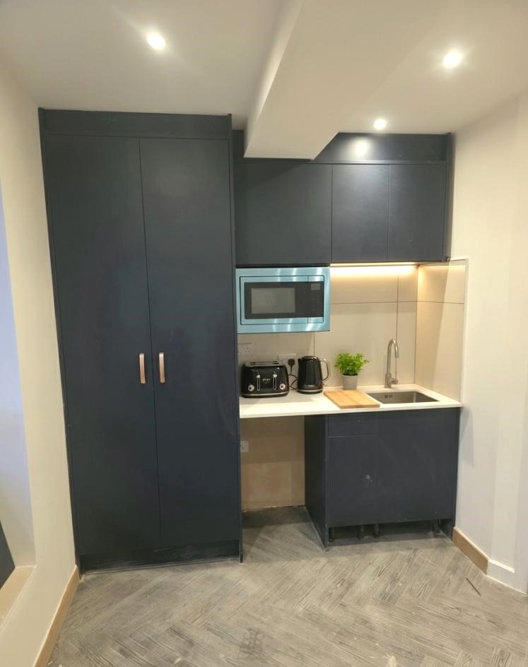 • Private Kitchenette: Perfect for light cooking and meal prep, featuring a Microwave, Undercounter Fridge, Sink, and dedicated cupboard space.