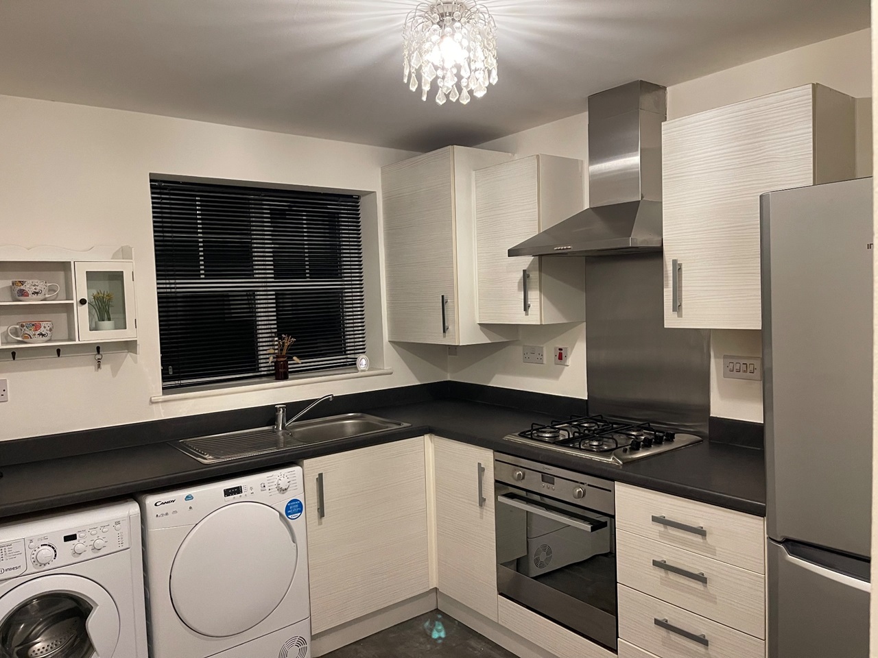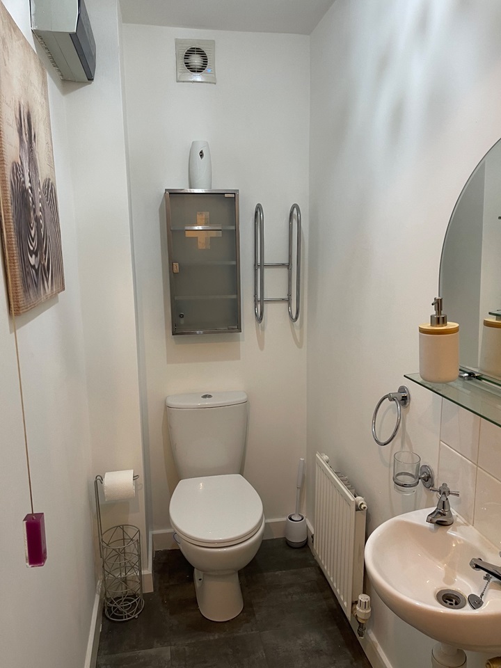 Upstairs. You will find a contemporary bathroom suite with bath, shower, WC & sink. There are also two beautiful bedrooms, all freshly decorated, carpeted throughout & one providing built in wardrobe space.