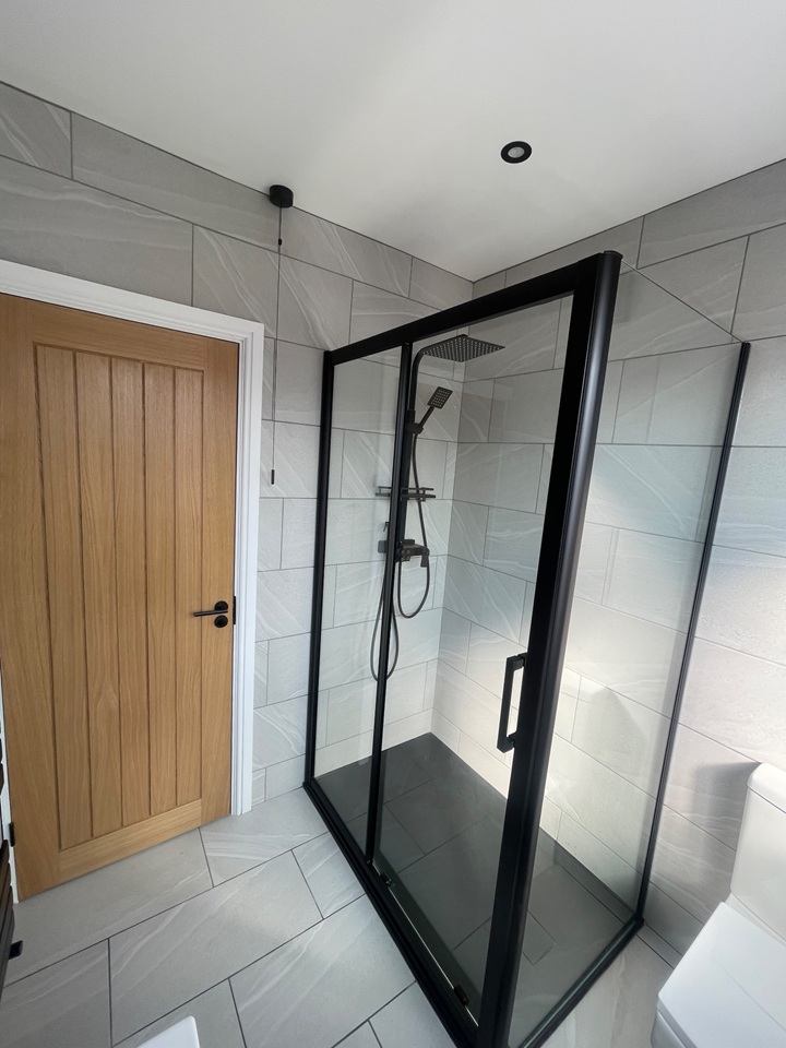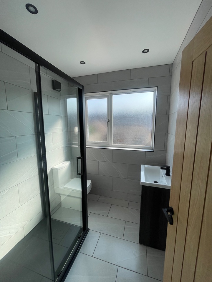 There is also one main bathroom on the ground floor that has been fully tiled floor to ceiling featuring a walk in shower, with modern black fittings throughout.