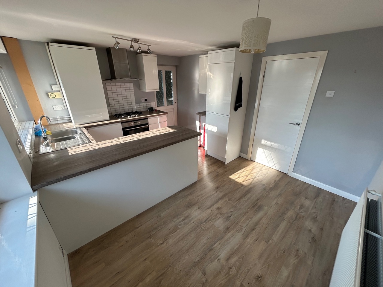On entry, the entrance hall has stairs to the first floor landing and has a door into a generously sized lounge, a bright and welcoming space with a large window providing an abundance of natural light. From here, step into the modern kitchen-dining area, which features ample cupboard storage and a cozy dining space illuminated by dual windows. A single back door from the kitchen provides direct access to the rear garden, making it ideal for entertaining or enjoying quiet moments outdoors.