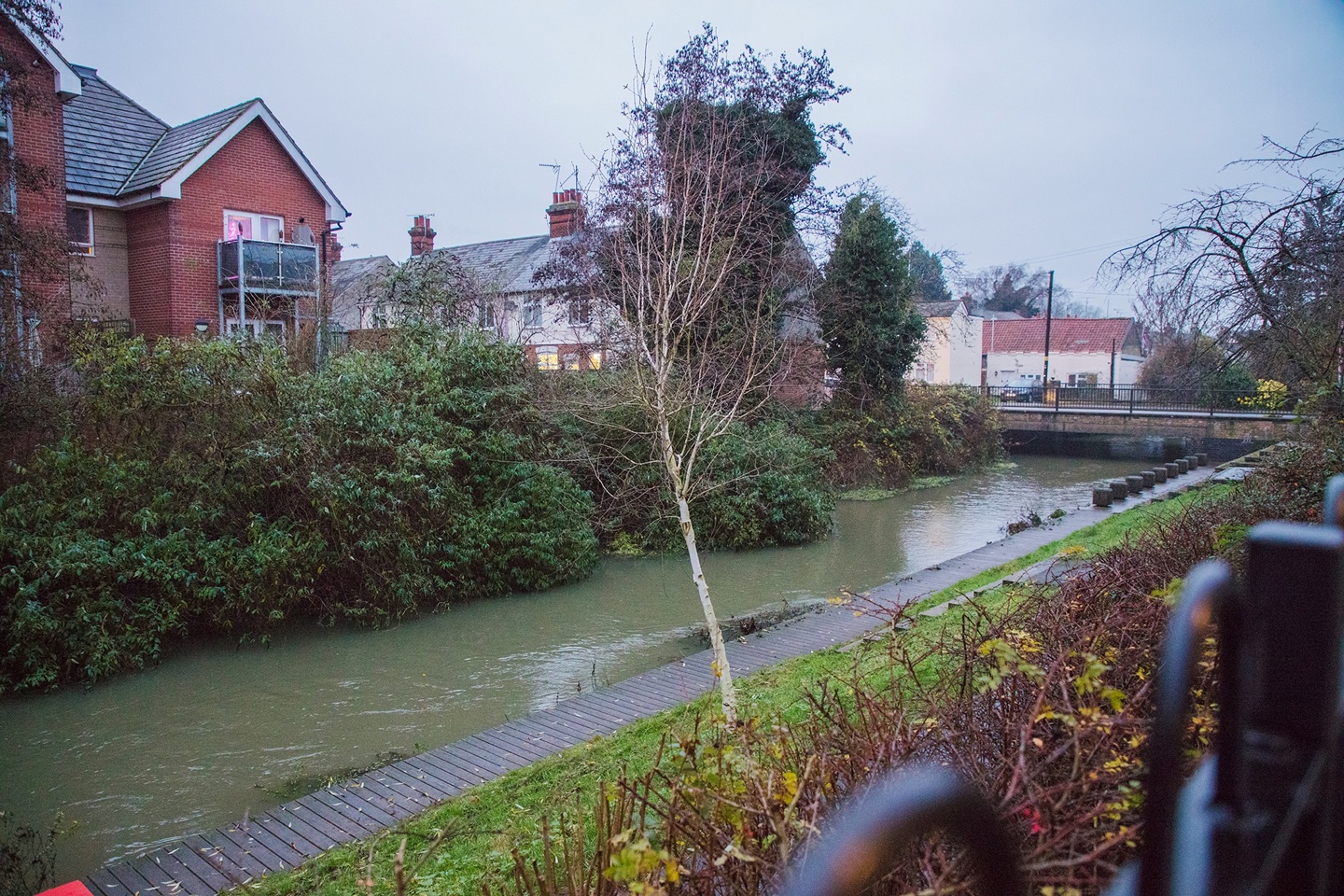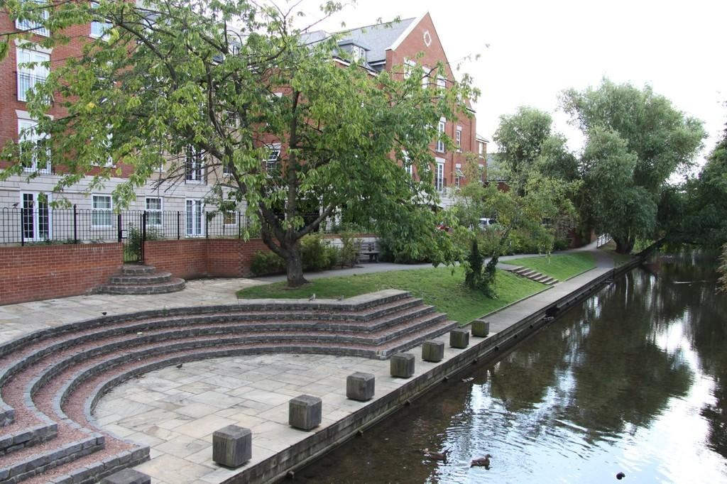 There is an on-site allocated parking space and a low-level brick wall with black ornamental railings above surrounds the site. The communal gardens overlook the River Gipping and boardwalk.