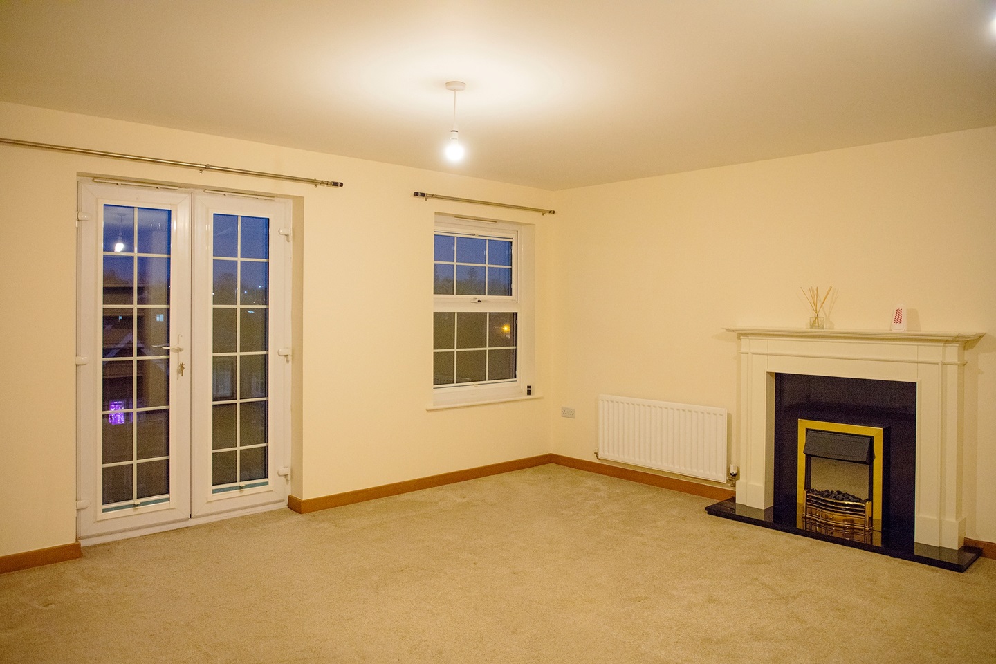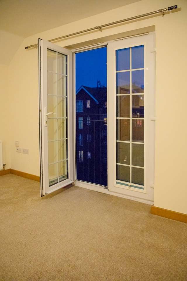 French doors to river aspect with Juliet Balcony, 2 radiators