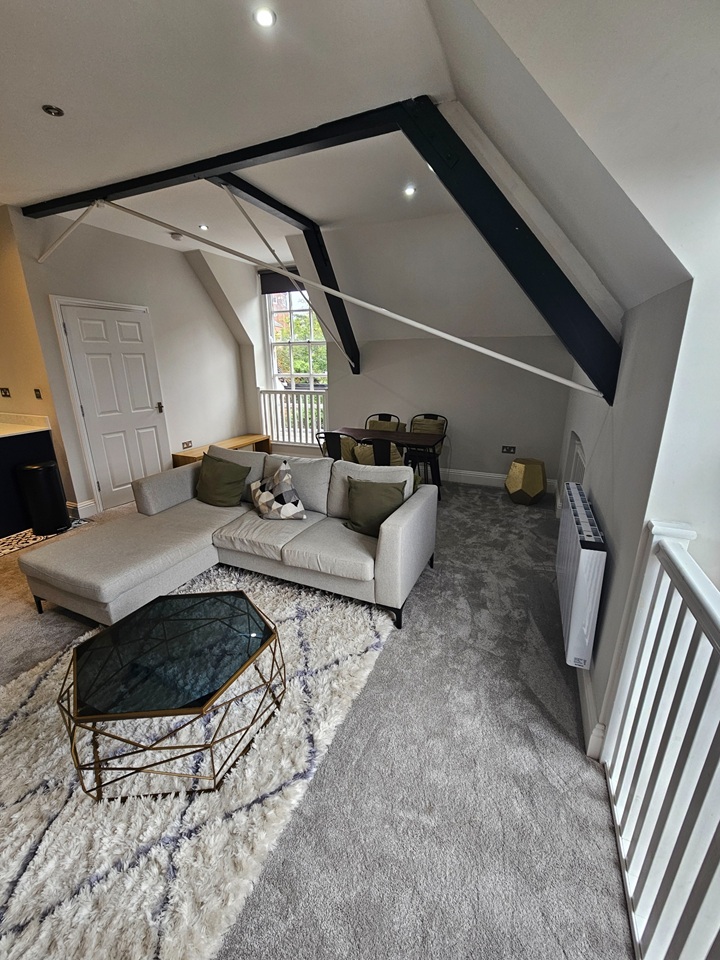 This area is super spacious with some stunning original features, finishing off the space with a modern touch via carpets, flooring tiles and decor.