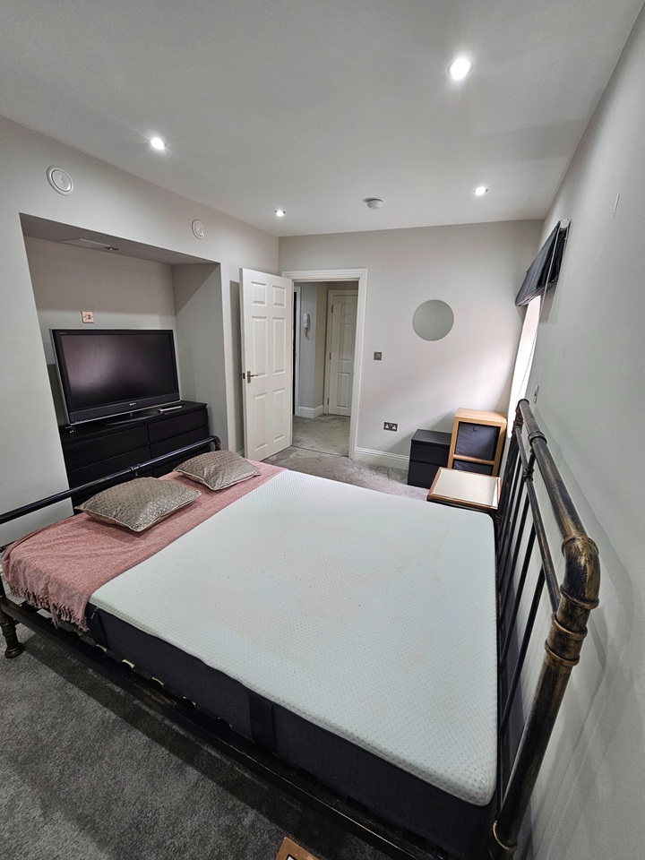 - Bedroom 2 - larger of the two bedrooms (with double bedframe, mattress, wardrobe, chest of drawers, bedside tables, TV & other accessories)
