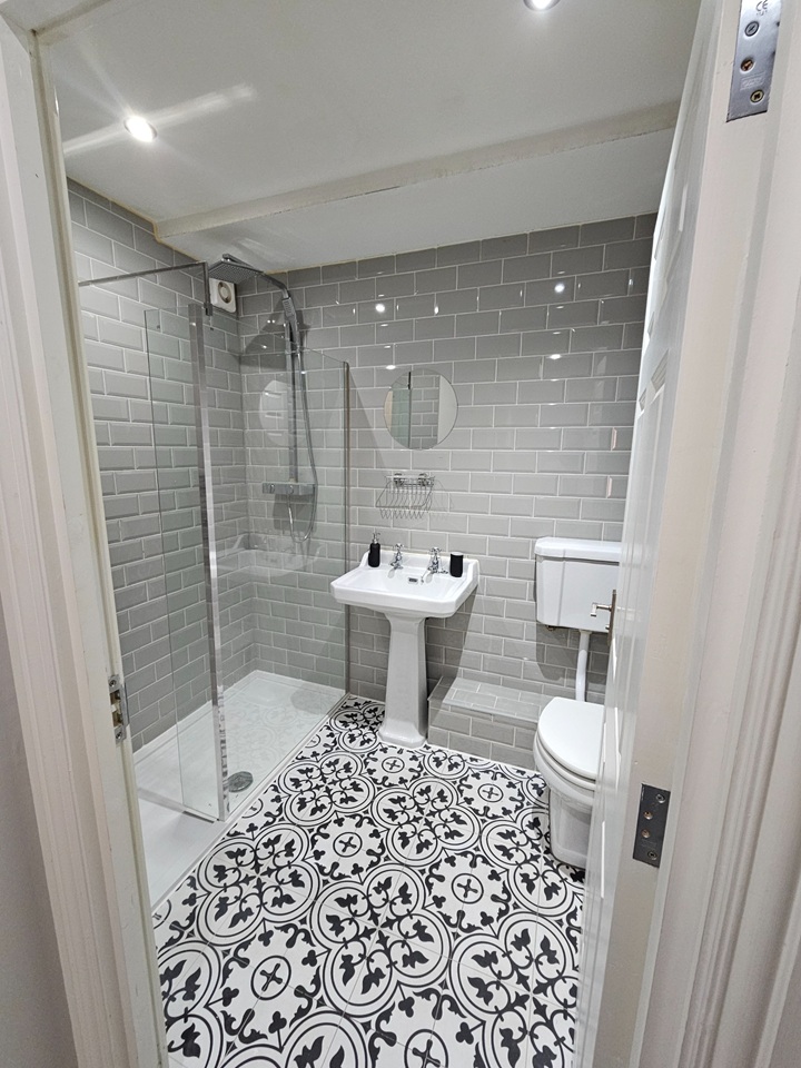 - Family bathroom (with large shower cubicle and shower over, toilet, hand basin and towel rail)