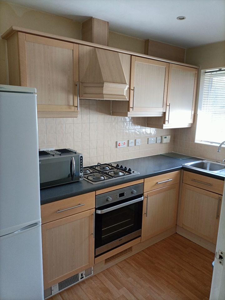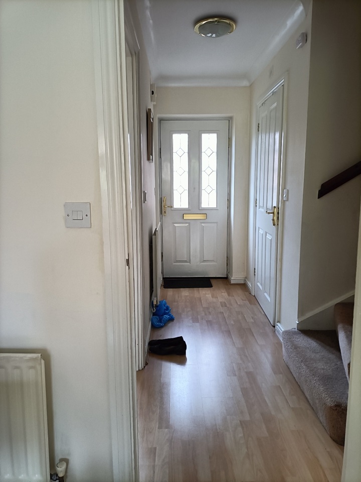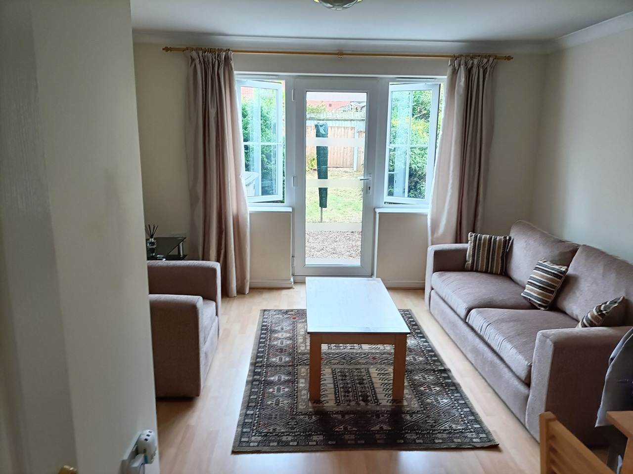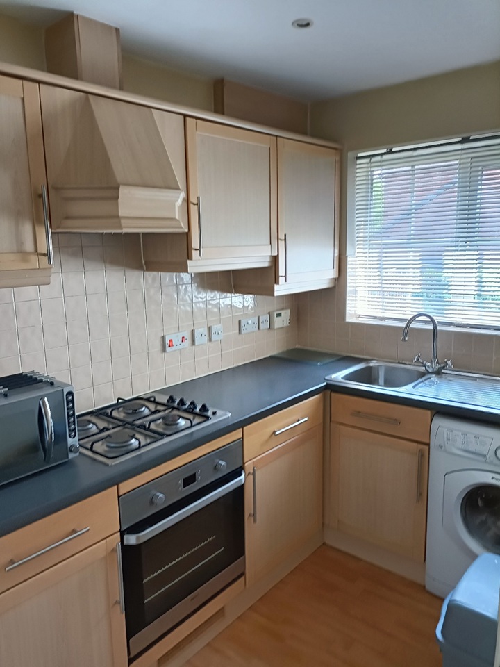 On the ground floor, the house comprises of an entrance hall, guest WC, fitted kitchen with fridge freezer, integrated gas hob with electric oven, microwave oven and washer dryer. The lounge and dining areas have laminated flooring and lead to under-stairs storage cupboard and back garden with a gate.