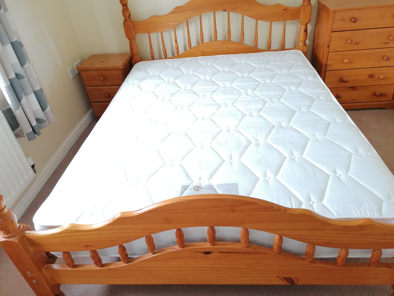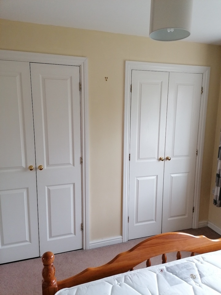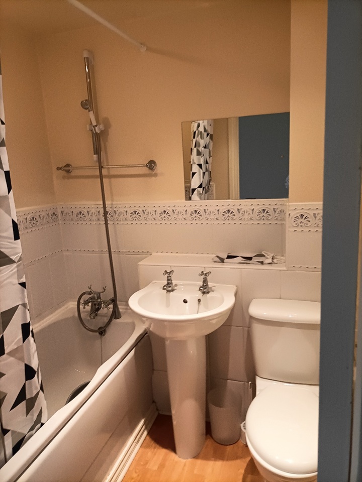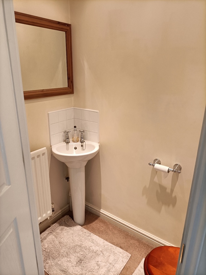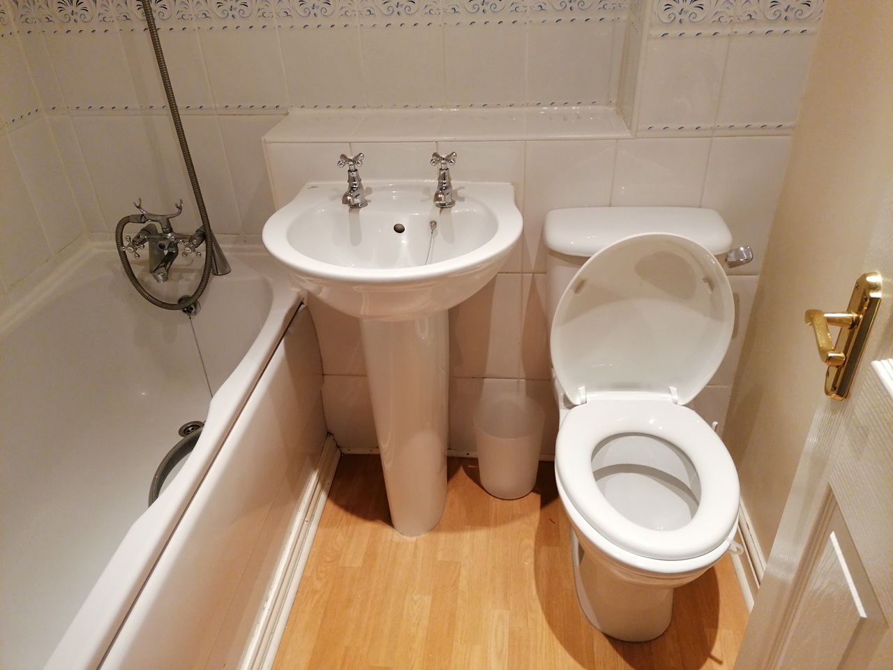 The first floor has two double bedrooms with neutral carpets, one bedroom having a built-in double wardrobe. The bathroom has a bath with over-bath shower.