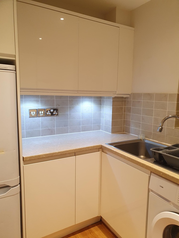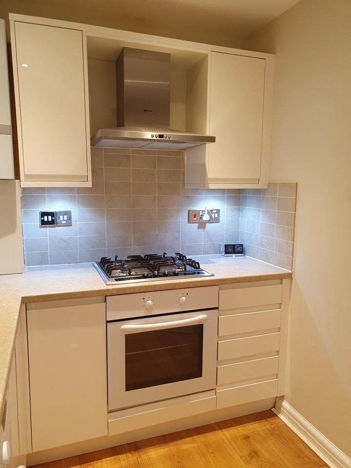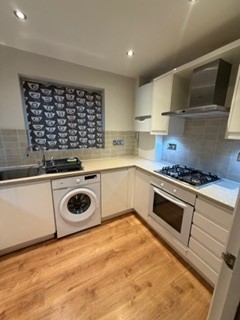 Modern fitted kitchen with oven; gas hob; fridge freezer; washing machine and dishwasher;